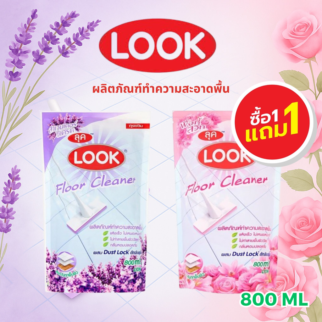 (ซื้อ 1 แถม 1) ลุค ผลิตภัณฑ์ทำความสะอาดพื้น LOOK แบบชนิดถุงเติม ขนาด 800 มล มี 2 กลิ่นให้เลือก
