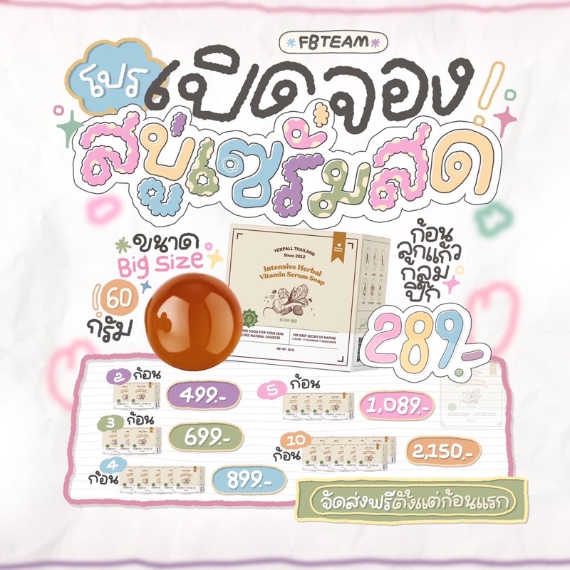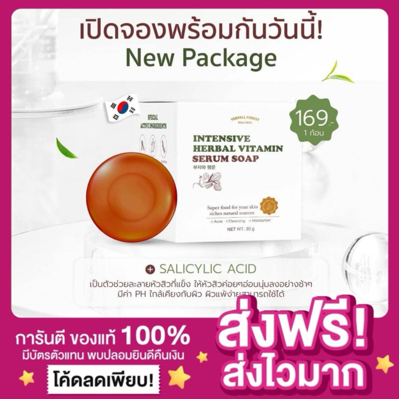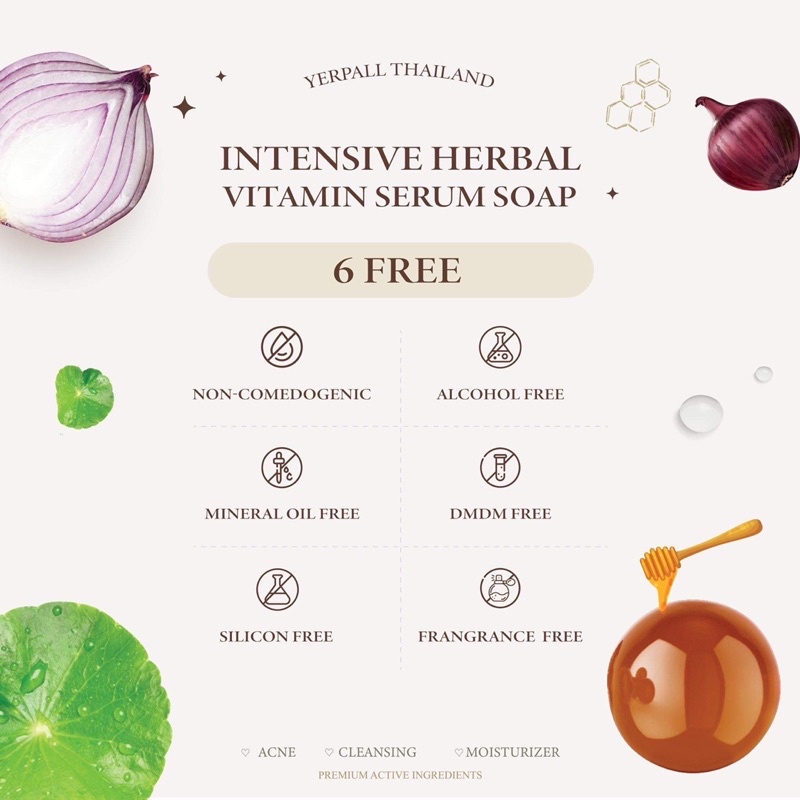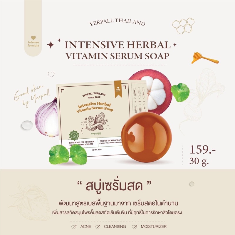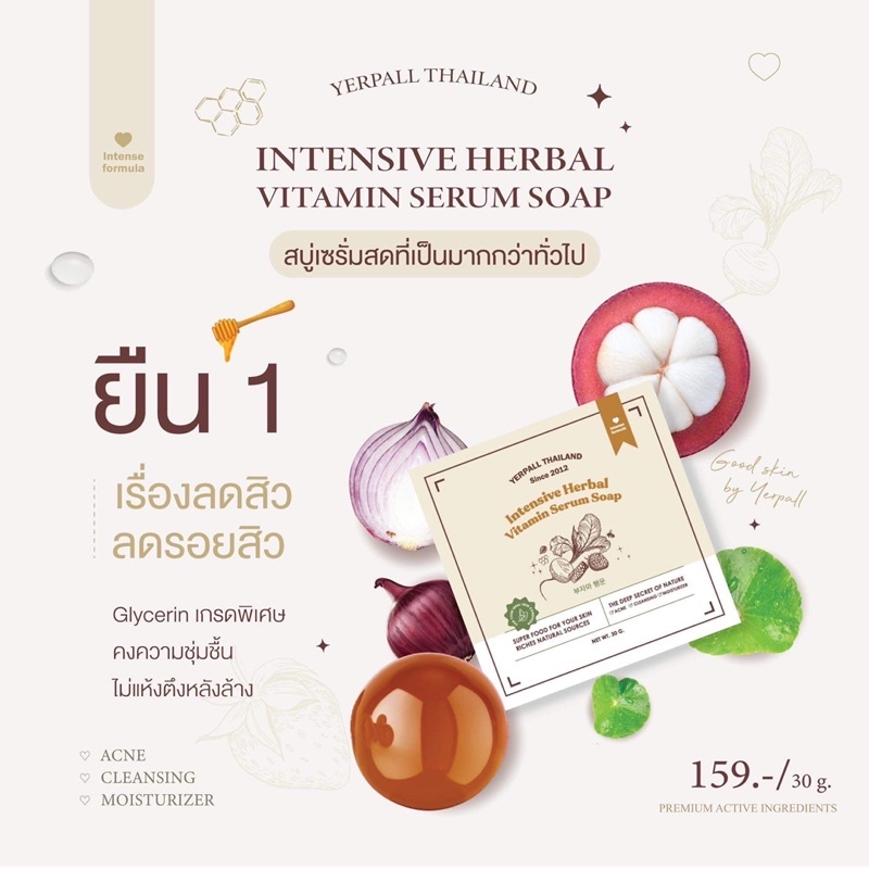 [ของแท้ แพกเกจใหม่🧄]สบู่เยอเพิล เซรั่มสด Yerpall Intensive Herbal Vitamin Serum Soap ลดสิว รอยจาง สบู่สตอ สบู่เยอเพล
