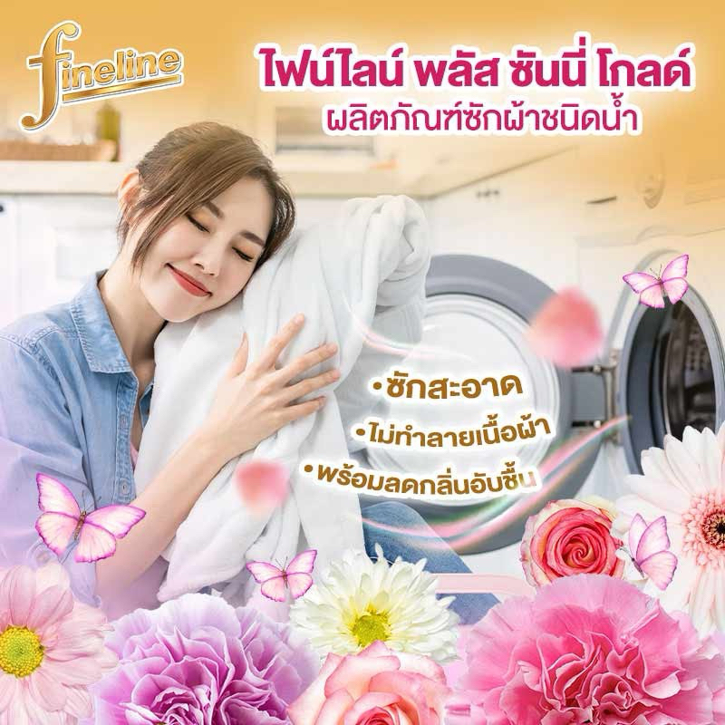 Fineline ไฟน์ไลน์พลัส ซันนี่โกลด์ น้ำยาซักผ้า สีทอง ขนาด 2,800 มล.