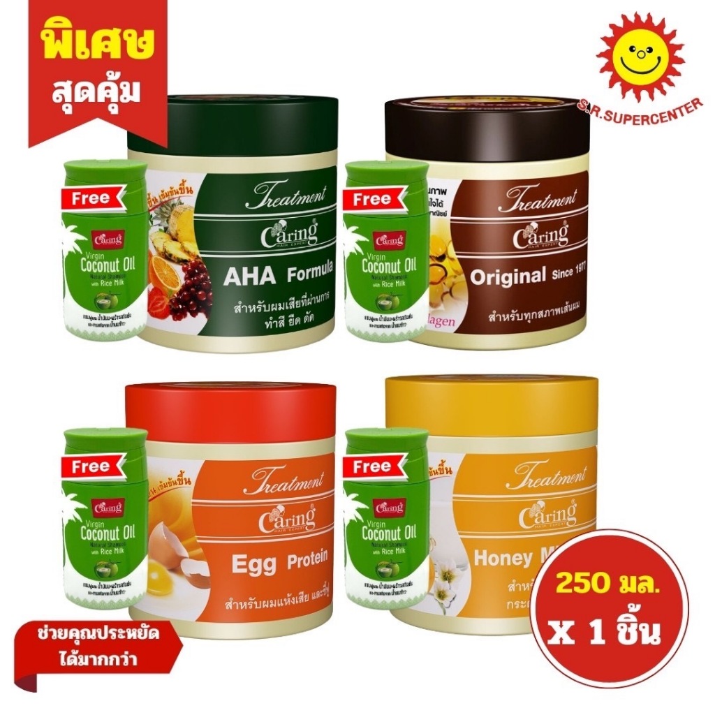 [ แพ็ค1+1 ] Caring Treatment แคริ่ง ทรีทเม้นท์ 250 มล. แถมฟรี! แคริ่งเวอร์จิ้นโคโคนัท 80 มล. (แพ็ค1+1)