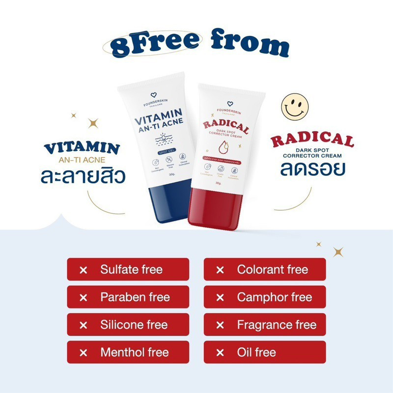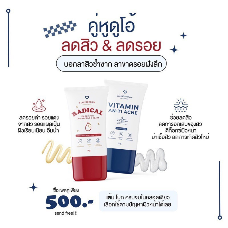**ไม่มีกล่อง** Founderskin Anti acne spot ฟาวเดอร์สกิน ละลายสิว & ครีมลดรอย & มาส์กหน้า & มอยซ์เจอไรเซอร์ 30 ml. ♥️♥️