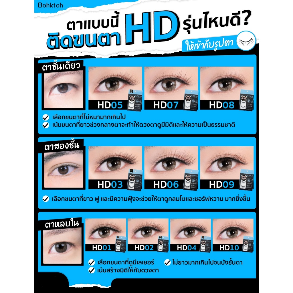 ถูก/แท้/มีไลฟ์ ขนตาปลอม บอกต่อ Bohktoh High 3D ขนตาปลอม3D ต่อขนตา แต่งตา ขนตายาว ขนตางอน เพิ่มมิติ ใช้ดี สวย ชัด