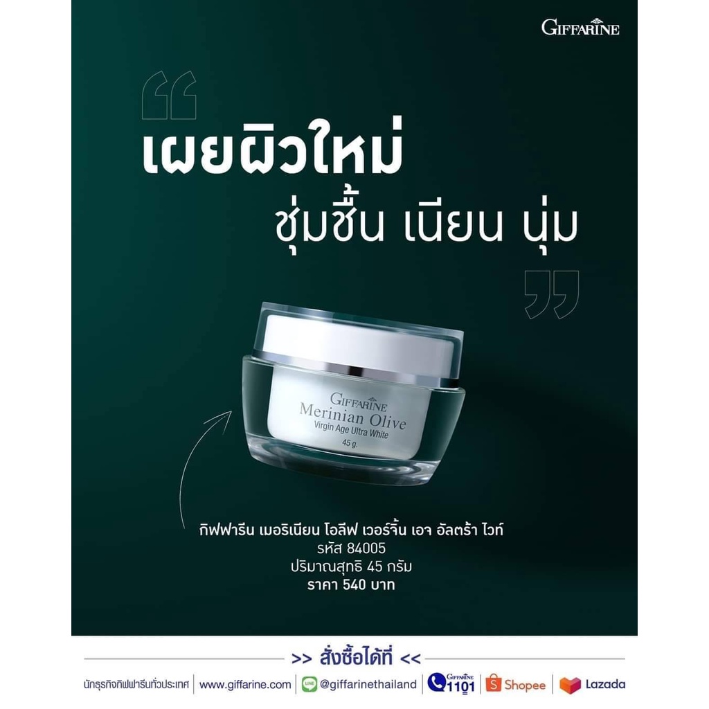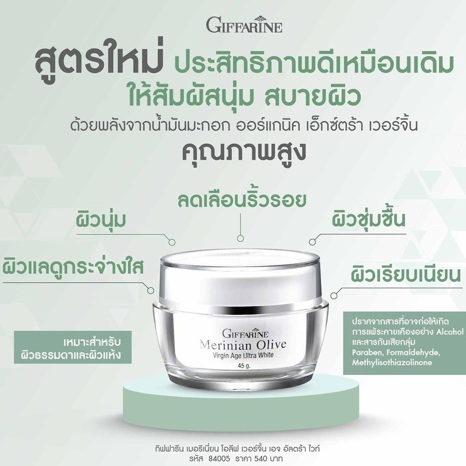 ครีมบำรุงผิวหน้า สูตรน้ำมันมะกอก Merinian Olive Virgin Age Ultra White กิฟฟารีน ผิวแห้งและผิวธรรมดา