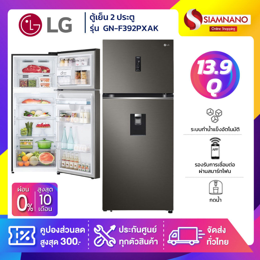 ตู้เย็น LG 2 ประตู Inverter รุ่น GN-F392PXAK ขนาด 13.9Q มีที่กดน้ำ (รับประกันนาน 10 ปี)