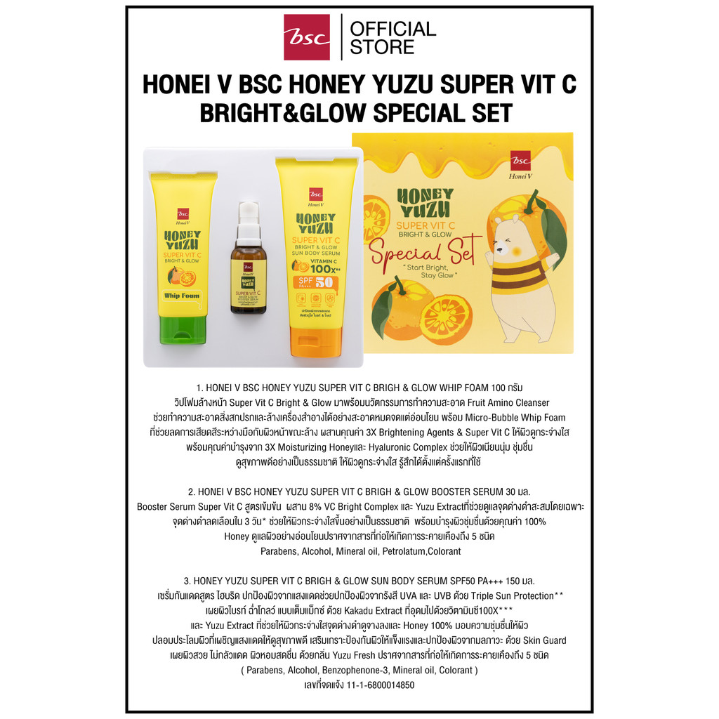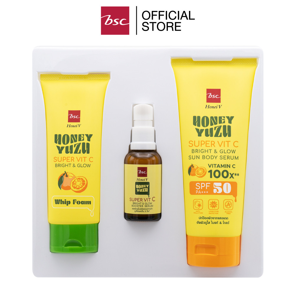 HONEI V BSC HONEY YUZU SUPER VIT C BRIGHT&GLOW SPECIAL SET ฮันนี่ วี บีเอสซี ฮันนี่ ยูซุ ซูเปอร์ วิตซี ไบรท์ แอนด์ โกลว์