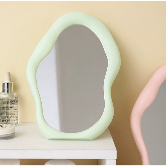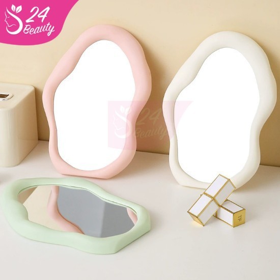 กระจกแต่งหน้าตั้งโต๊ะ กระจกแต่งหน้าทรงเมฆ สามารถตั้งหรือแขวนได้ [1 ชิ้น]