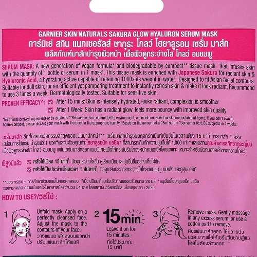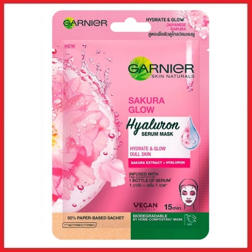การ์นิเย่ สกิน แนทเชอรัลส์ ซากุระ โกลว์ ไฮยาลูรอน เซรั่ม มาส์ก Garnier Sakura Glow Hyaluron Serum Mask