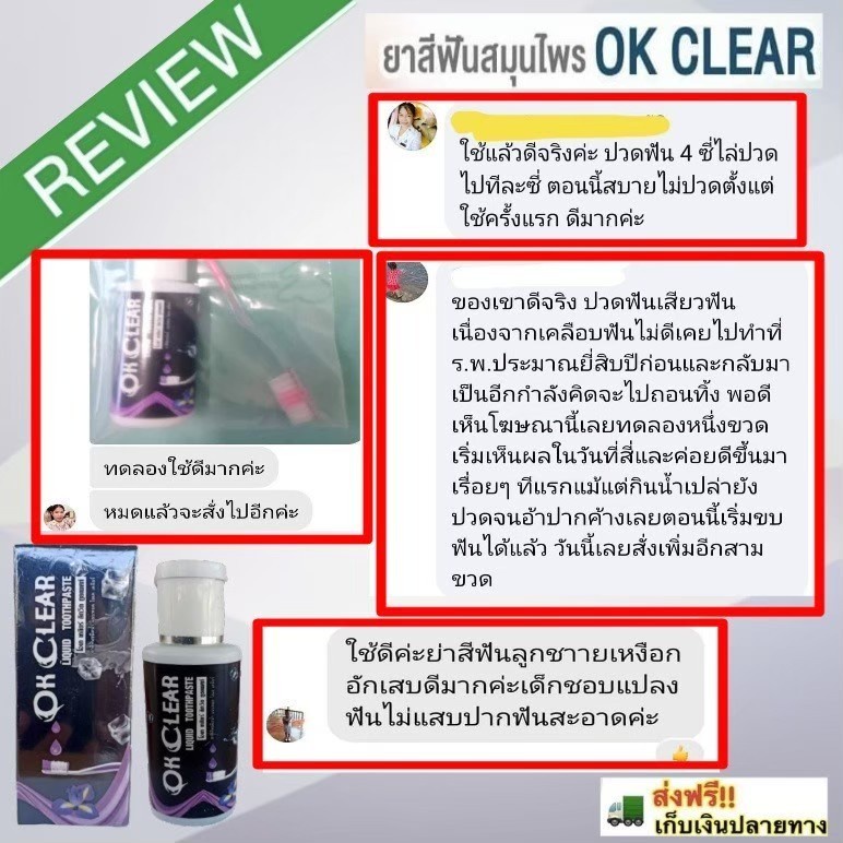 ยาสีฟันขายดี ยาสีฟันสมุนไพรมาแรง โอเคเคลียร์ลิควิคทูธเพสท์ Ok Clear ขนาด 50 มล. ล็อตใหม่