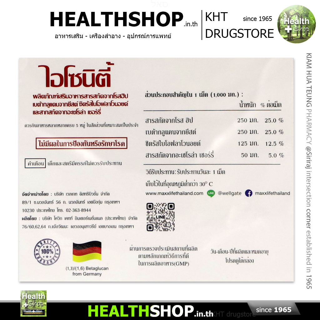 MaxxLife ISONITY เสริมภูมคุ้มกัน Rose Hip Beta-glucan Citrus Bioflavonoids Acerola Cherry