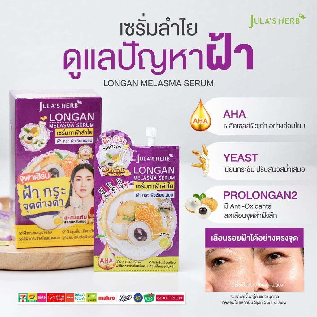 [ยกกล่อง 6 ซอง] เซรั่มทาฝ้า ลำไย จุฬาเฮิร์บ