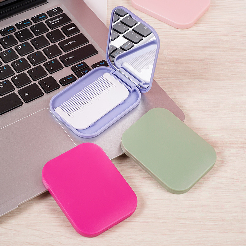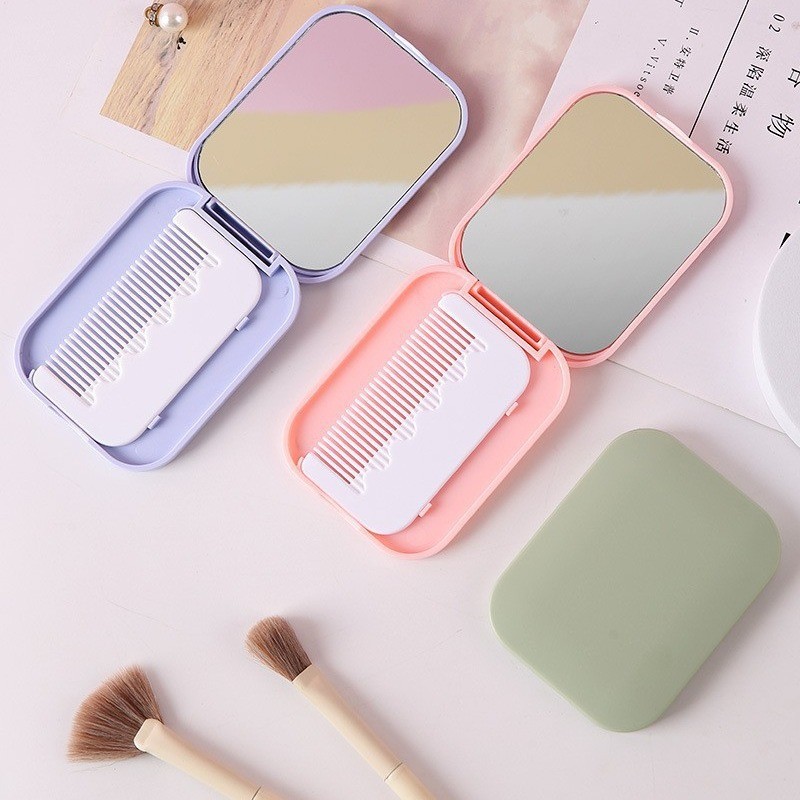 กระจกแบบพกพา กระจกแต่งหน้า พร้อมหวีด้านใน Mini Mirror พับได้ (พร้อมส่งค่ะ) G3475
