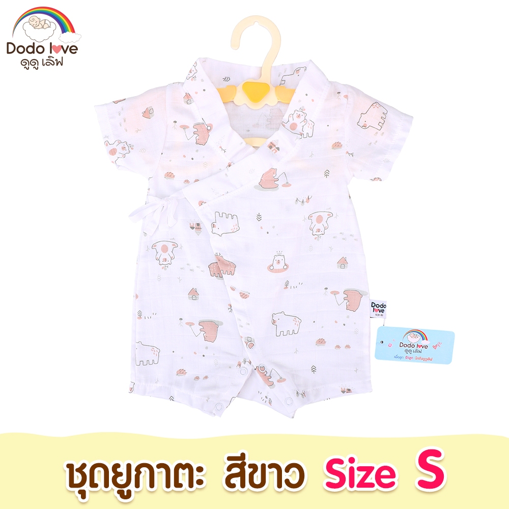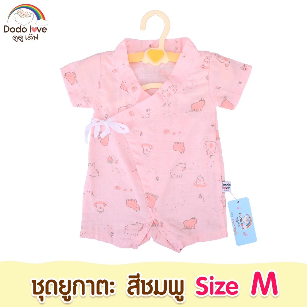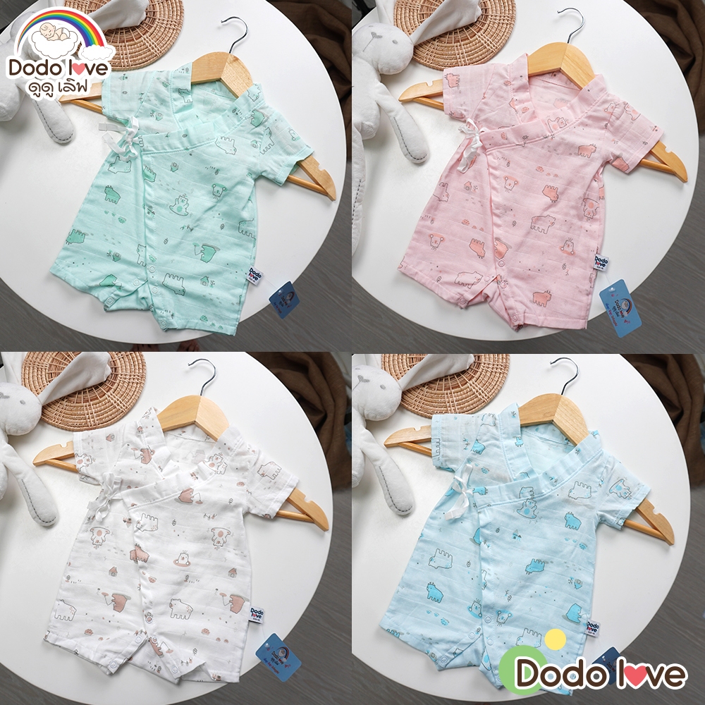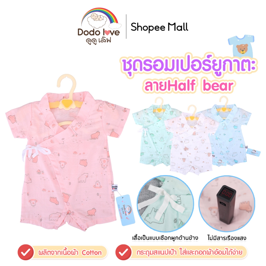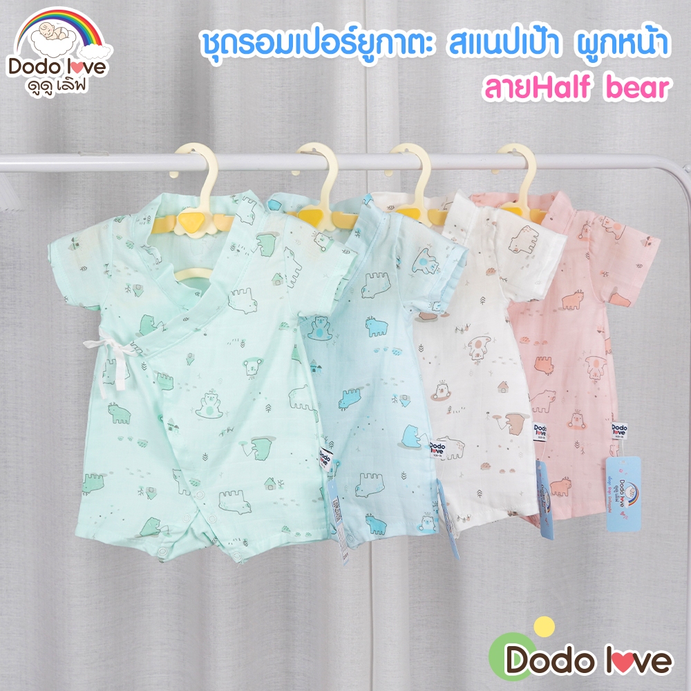 DODOLOVE ชุดรอมเปอร์ยูกาตะ สแนปเป้า ผูกหน้า ลายHalf bea ชุดเด็ก เสื้อผ้าเด็ ก ผ้าคอตตอน 100%