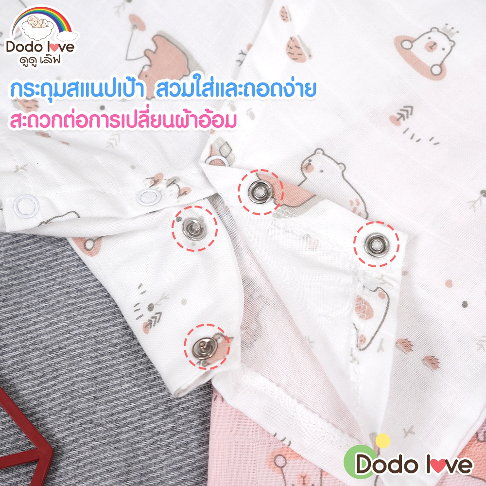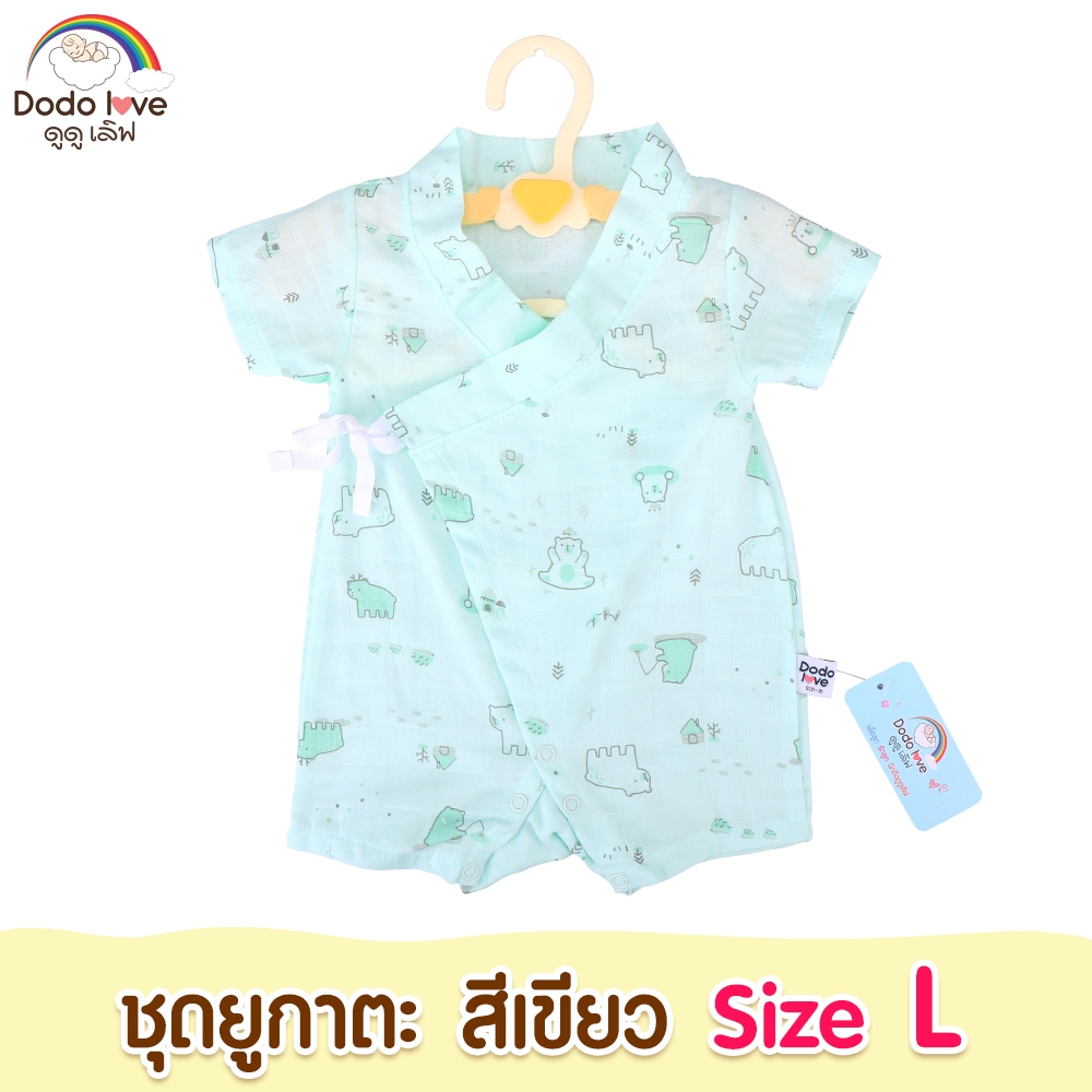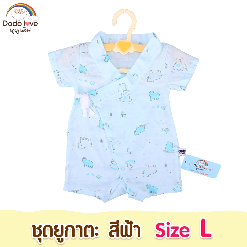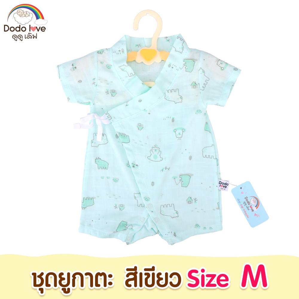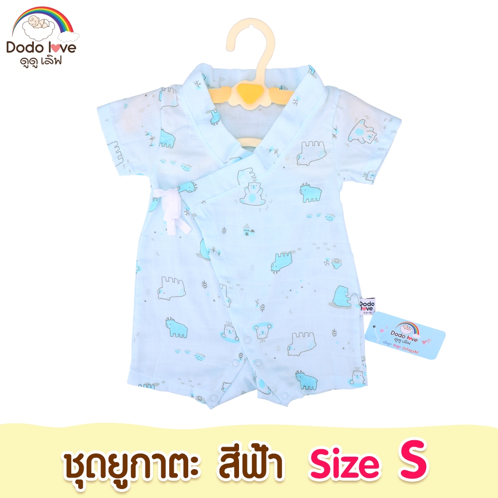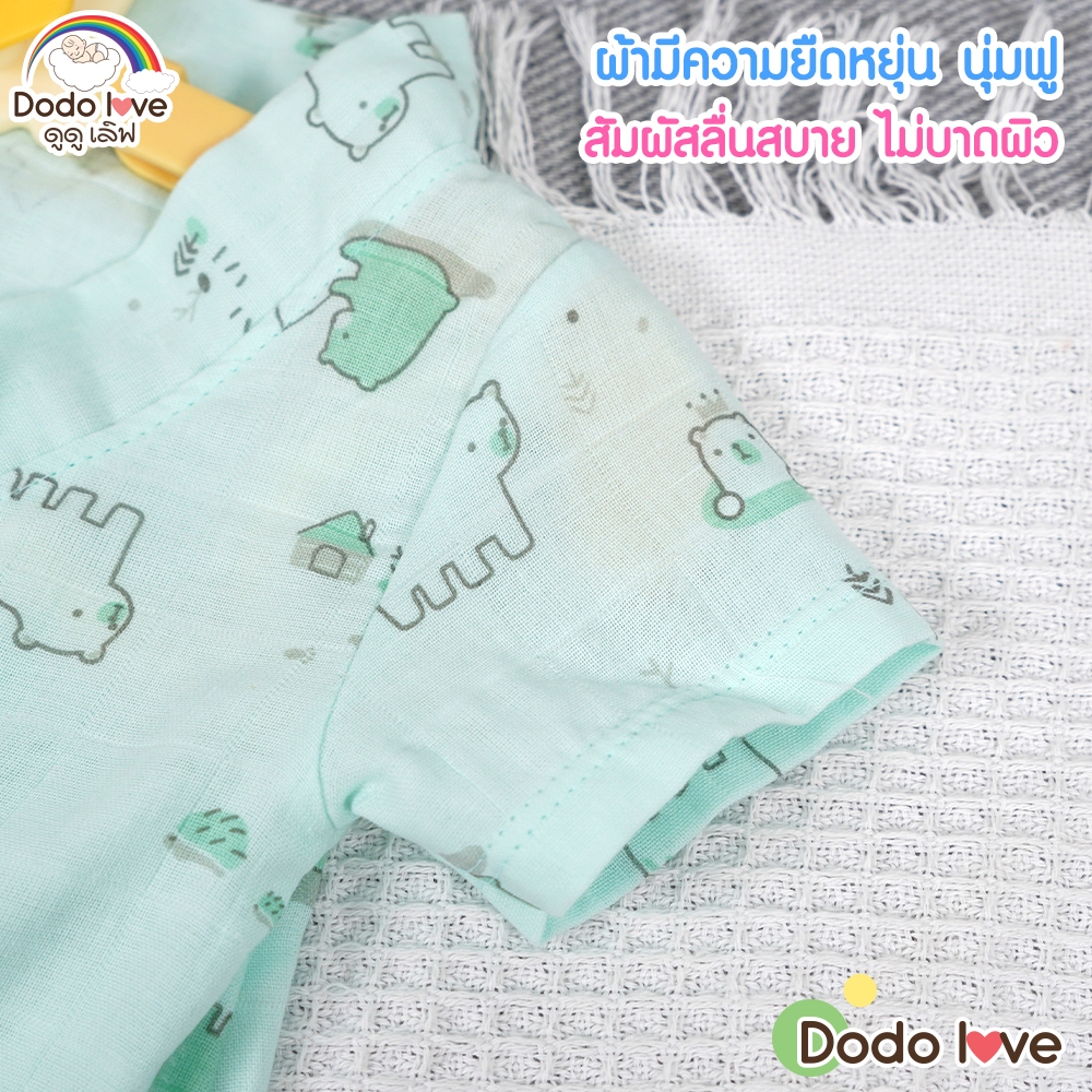 DODOLOVE ชุดรอมเปอร์ยูกาตะ สแนปเป้า ผูกหน้า ลายHalf bea ชุดเด็ก เสื้อผ้าเด็ ก ผ้าคอตตอน 100%