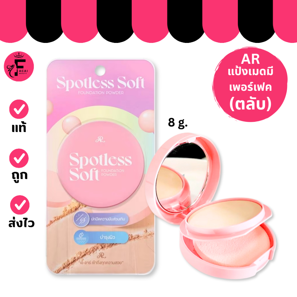(1ชิ้น) AR Spotless Soft Foundation Powder เออาร์ สปอตเลส ซอฟท์ แป้งผิวปัง เนียนกริบคุมมัน (8 g.)