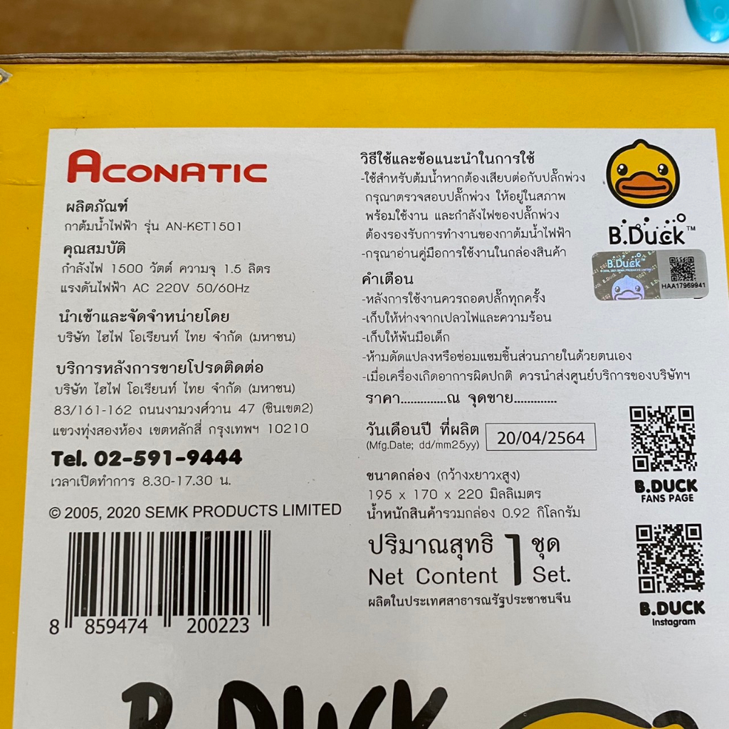 กาต้มน้ำไฟฟ้า B. DUCK aconatic AN-KET1515 กาต้มน้ำไฟฟ้าไร้สาย