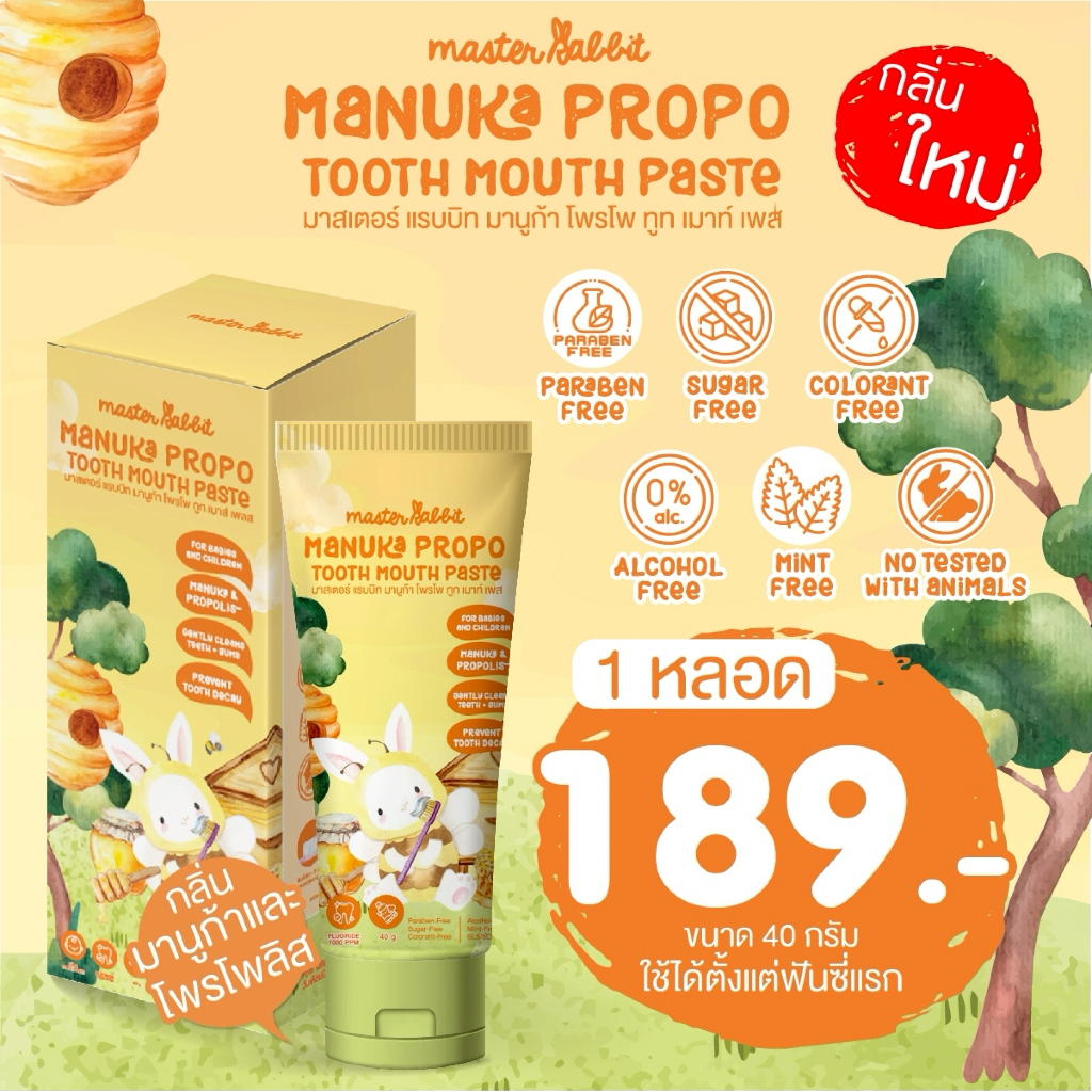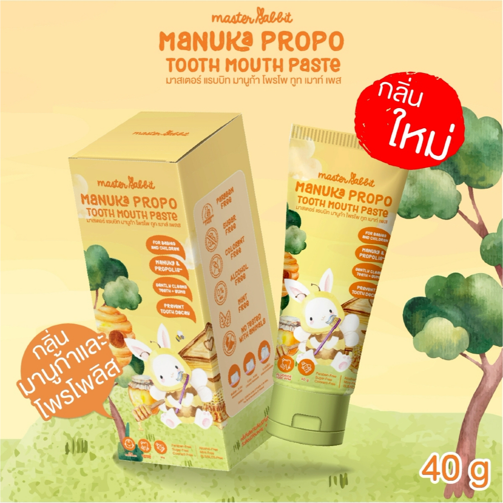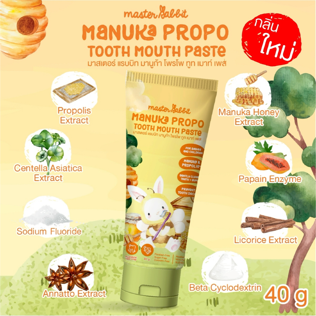 ยาสีฟันเด็ก กลิ่นมานูก้าและโพรโพลิส มีโพรโพลิส สำหรับเด็กตั้งแต่ฟันซี่แรก Master Rabbit MANUKA PROPO TOOTH MOUTH PASTE