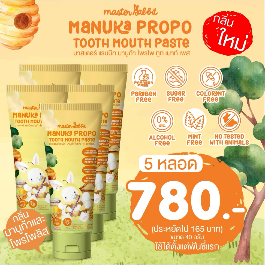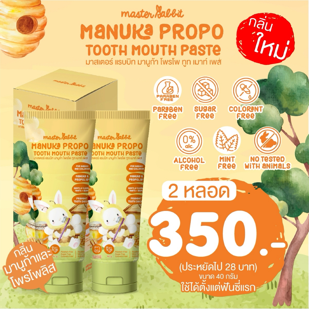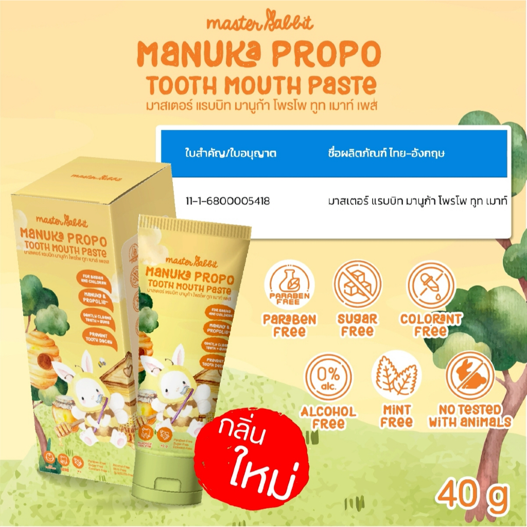 ยาสีฟันเด็ก กลิ่นมานูก้าและโพรโพลิส มีโพรโพลิส สำหรับเด็กตั้งแต่ฟันซี่แรก Master Rabbit MANUKA PROPO TOOTH MOUTH PASTE