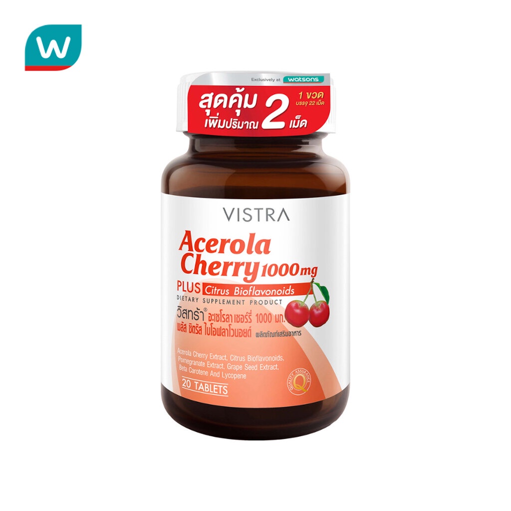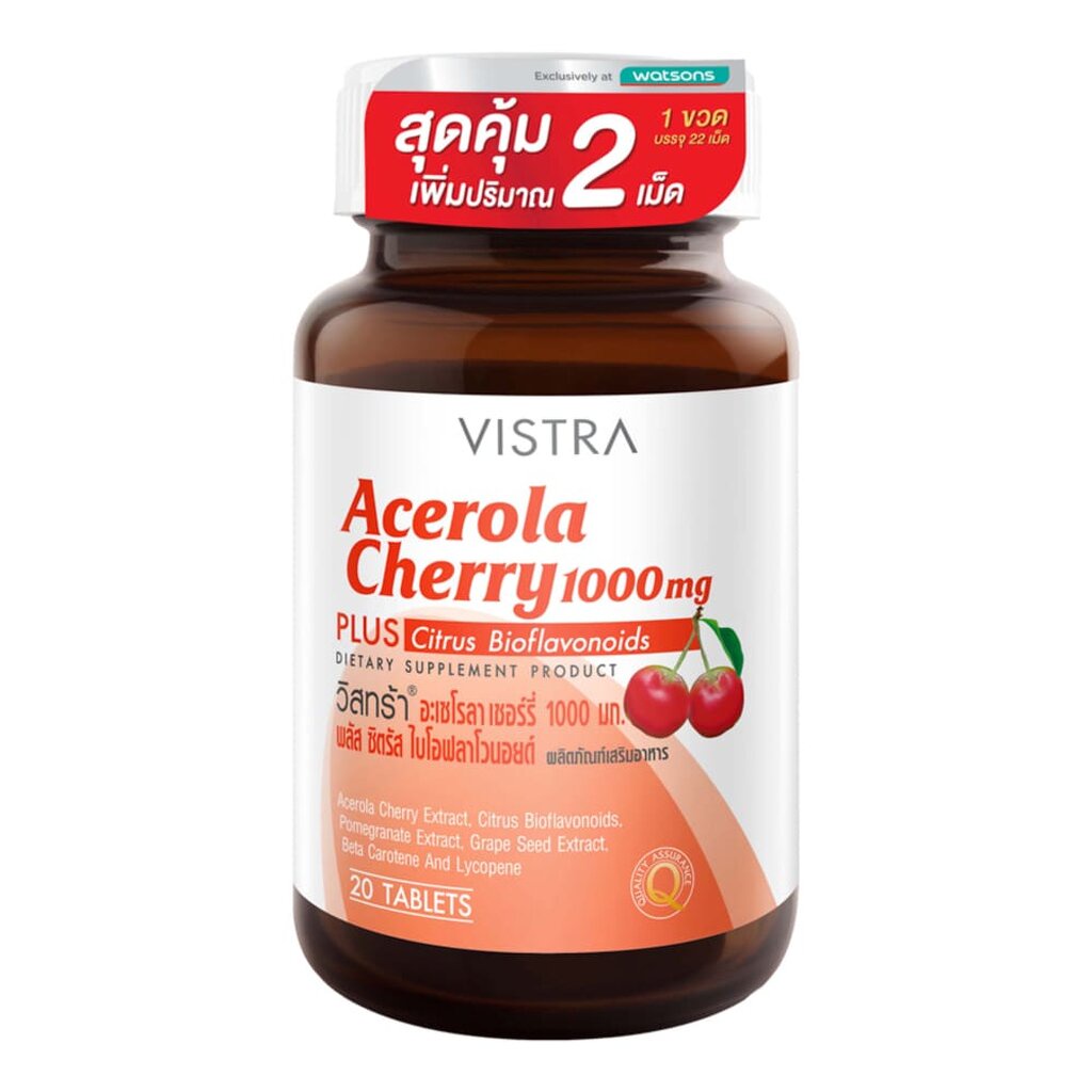 Vistra วิตามิน Vistra Acerola Cherry วิสทร้า อะเซโรลาเชอร์รี่ 20 เม็ด ฟรี 2 เม็ด