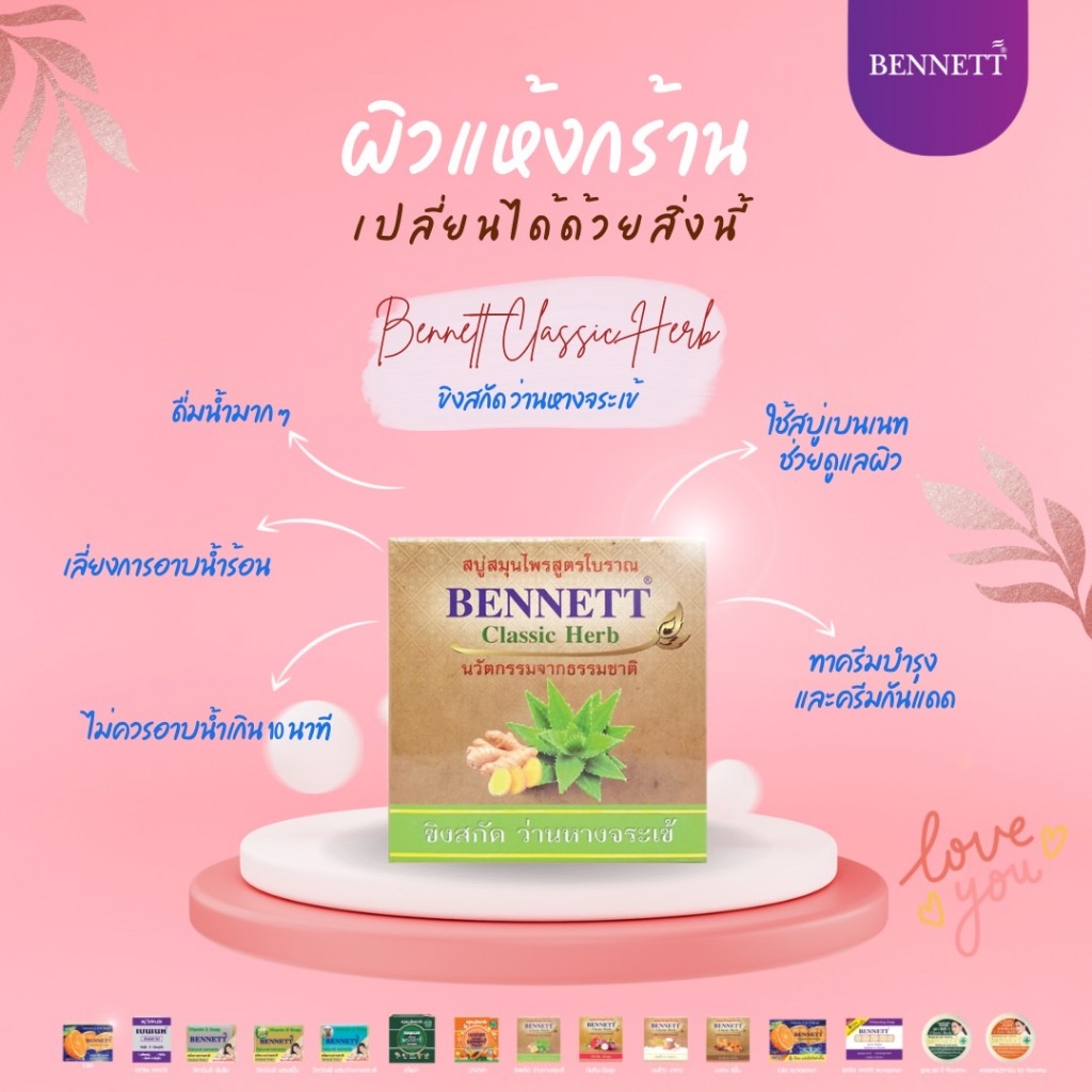 BENNETT Classic Herb Ginger & Aloe Vera Soap 160g เบนเนท คลาสสิค เฮิร์บ ขิง ว่านหางจระเข้