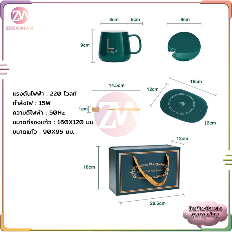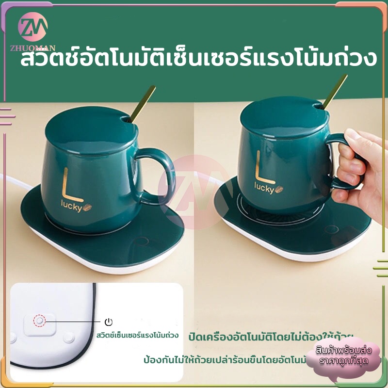 เครื่องอุ่นแก้ว อุณหภูมิคงที่ถ้วย ชุดถ้วยกาแฟ พร้อมเครื่องอุ่น 50-55 องศา ตลอดเวลาการวางแก้-วไว้บนแผ่นรอง