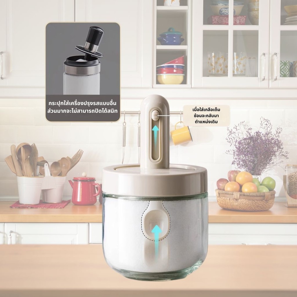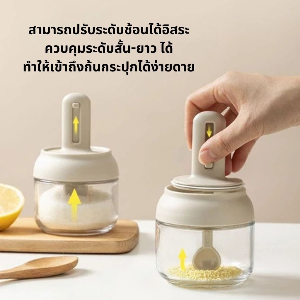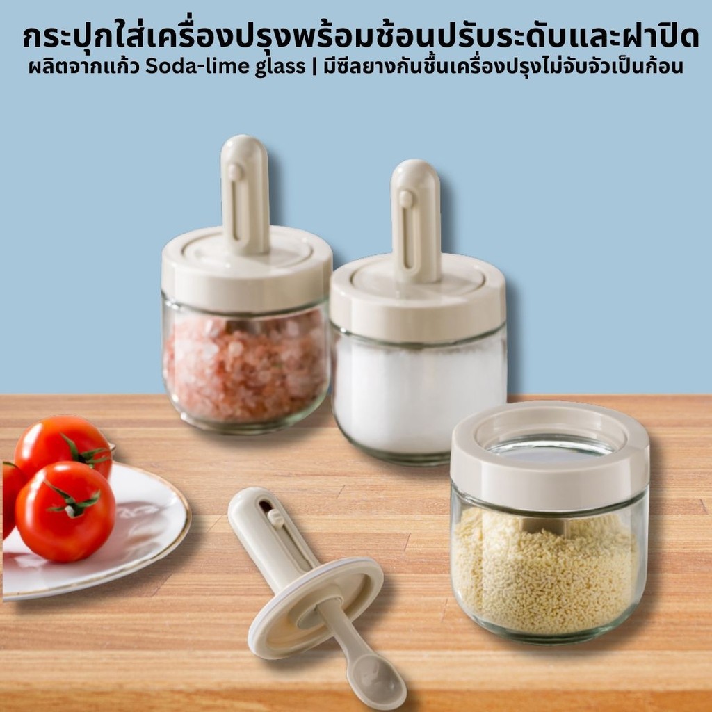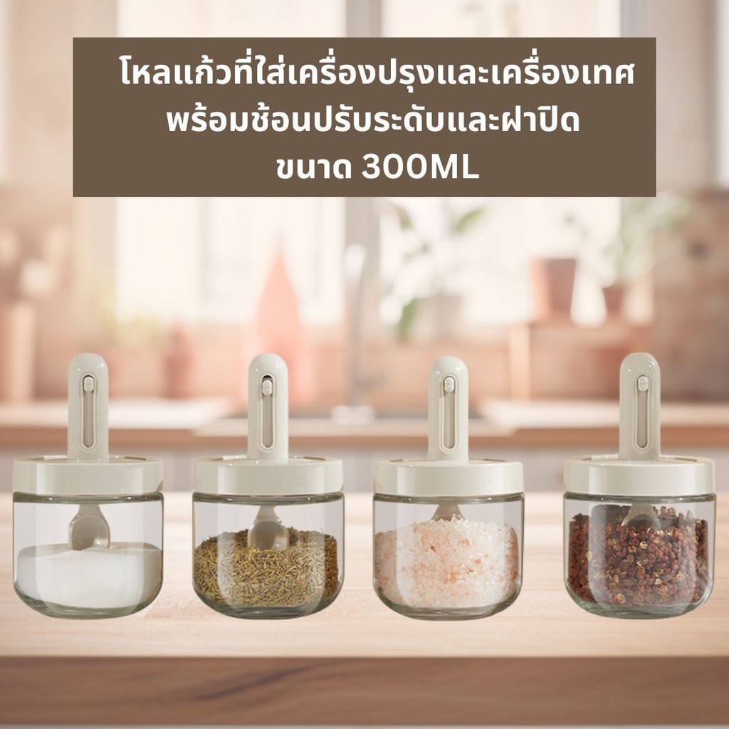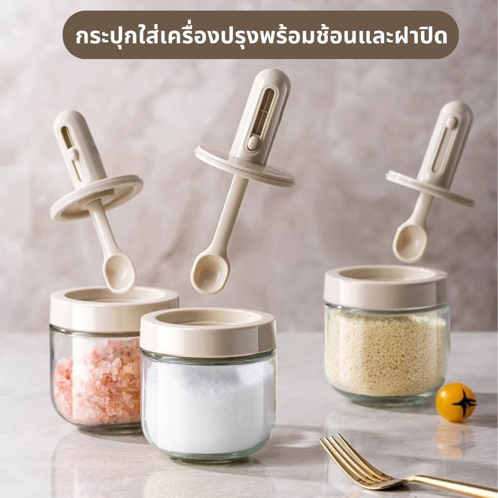 ขวดใส่เครื่องพร้อมช้อน โถแก้วปรุ งรส ขวดเครื่องปรุงทำจากแก้วหนาพิเศษ ขวดใส่เกลือและพริกไทย 300ml