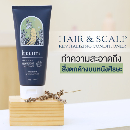 KRAAM คราม ครีมนวดผมสูตรเพื่อเส้นผมแข็งแรงไม่ขาดร่วง Hair&Scalp Revitalizing Conditioner (Rosemary&Ginseng Extract)200ml