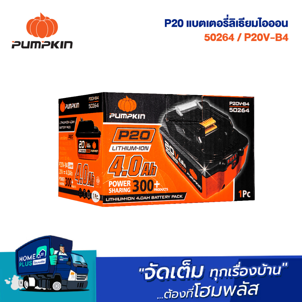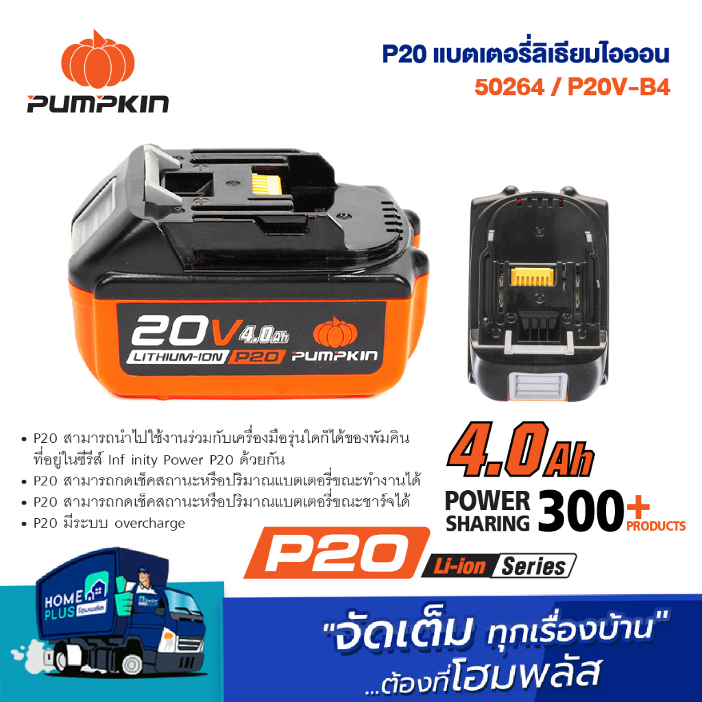 PUMPKIN แบตเตอรี่ลิเธียมไอออน ขนาดความจุ 4.0Ah (แอมป์อาวว์) 50264 P20V-B4 P20