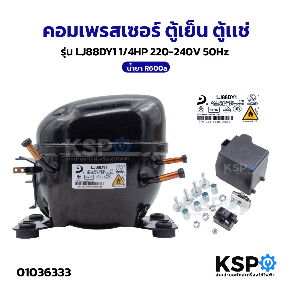 คอมตู้เย็น คอมเพรสเซอร์ 1/4 รุ่น LJ88DY1 น้ำยาแอร์ R600a อะไหล่ตู้เย็น
