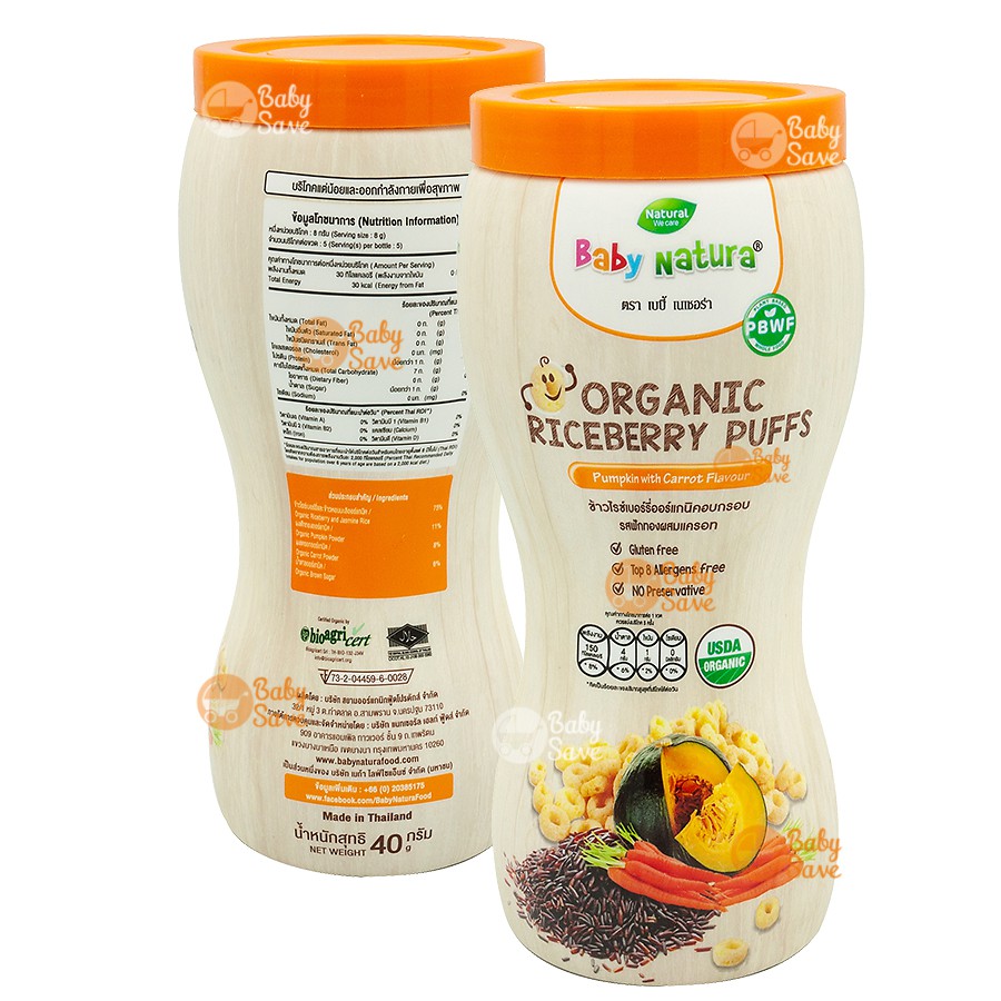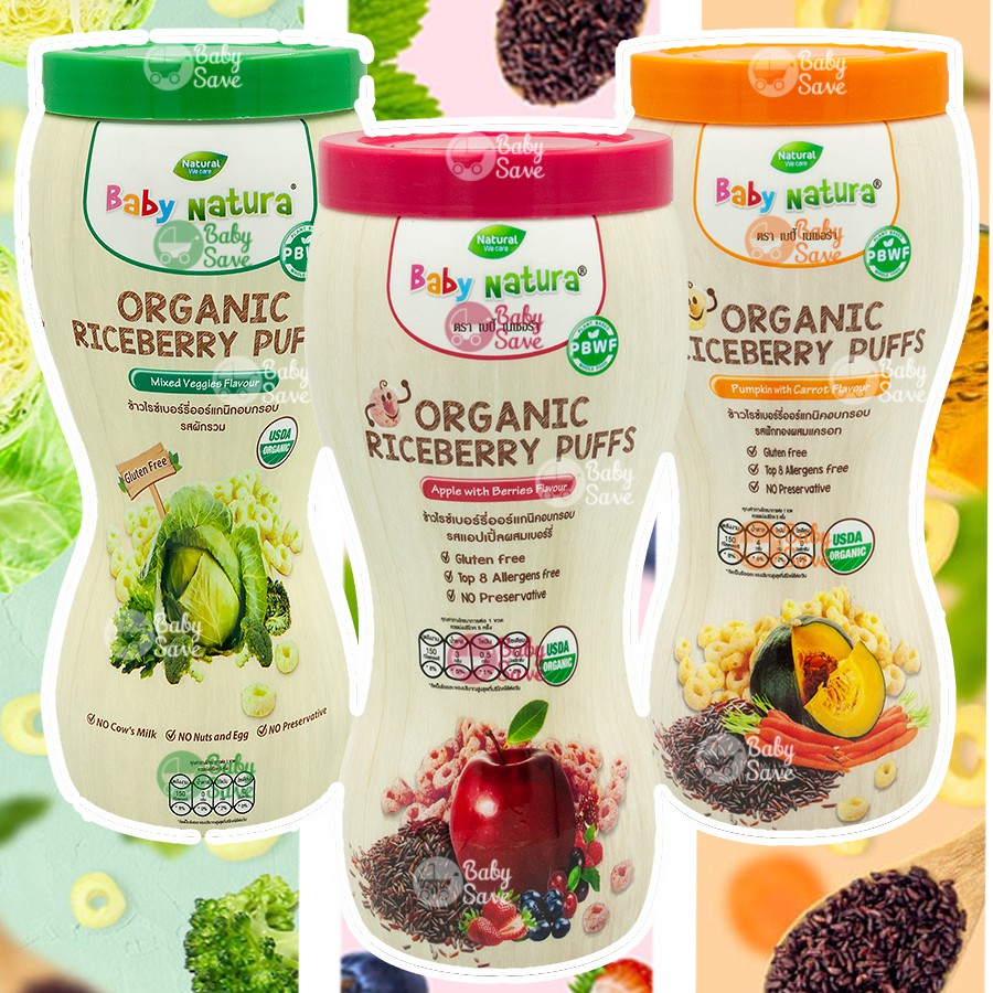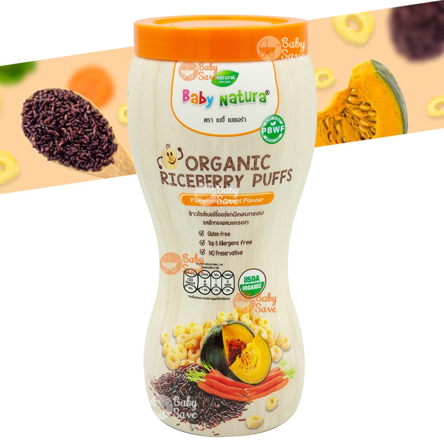 Baby Natura Puffs ขนมข้าวไรซ์เบอร์รี่ รสฟักทองผสมแครอท