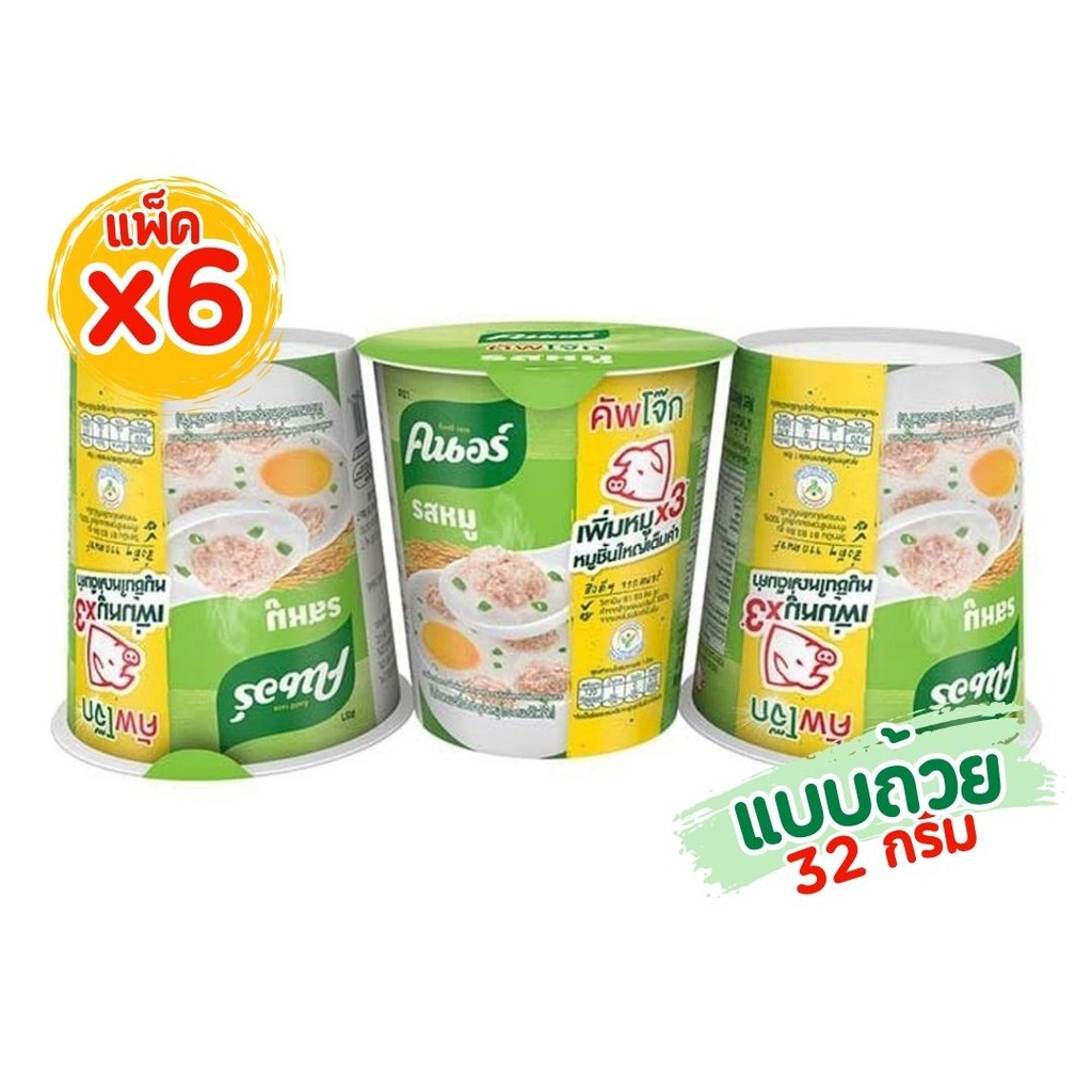 (แพ็ค 6 ถ้วย) คนอร์ คัพโจ๊กกึ่งสำเร็จรูป 32 กรัม แบบถ้วย by กำตังค์