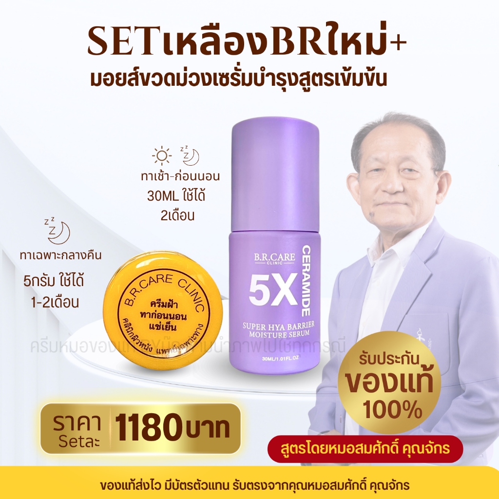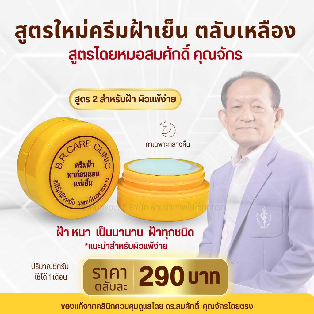 Set2ชิ้น ดูแลฝ้า ผิวแพ้ง่าย ตลับเหลือง ครีมฝ้าเย็นสูตร2 มอยส์ขวดม่วง หมอสมศักดิ์