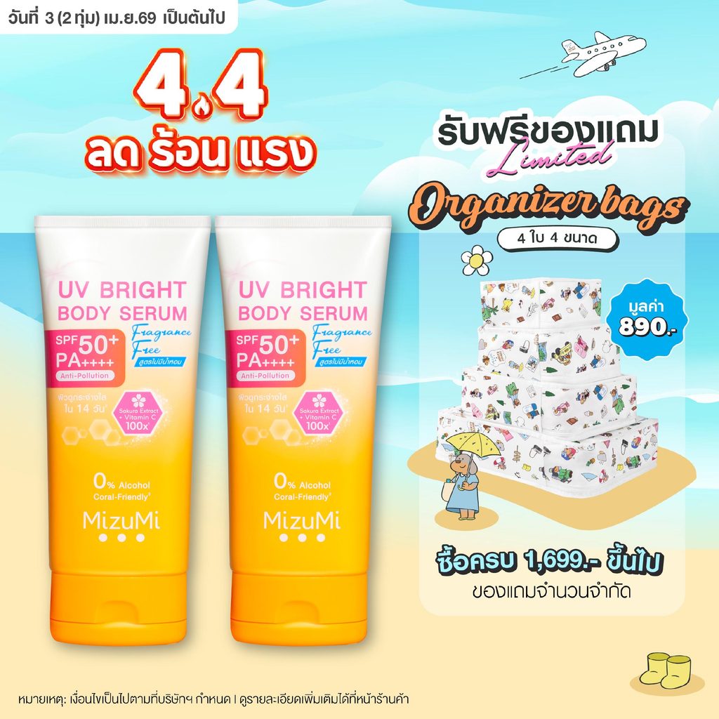 [แพ็คคู่] MizuMi UV Bright Body Serum Fragrance Free (180 ml) เซรั่มกันแดดทาผิวกายสูตรไม่มีน้ำหอม ซึมไว ปกป้องผิวจากแดด