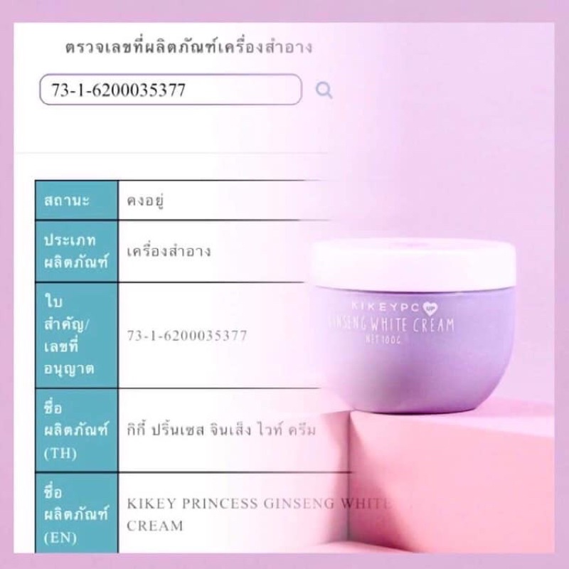 [โฉมใหม่]ครีมโสมกี้ Kikeypc Ginseng White Cream ขนาด 100 กรัม