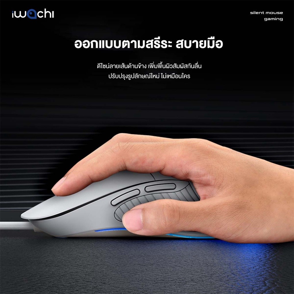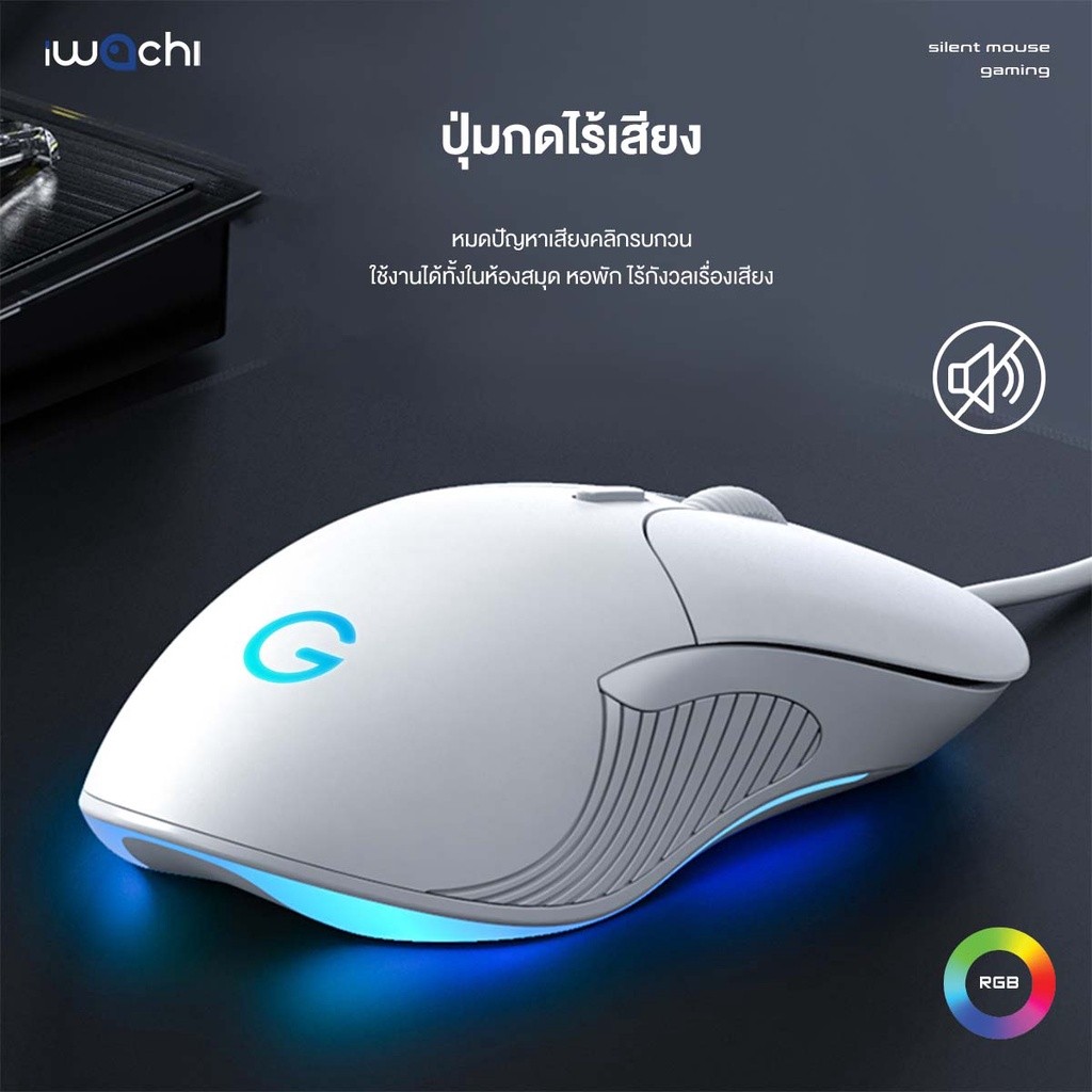 IWACHI เมาส์ G1 สำหรับเกมมิ่ง มีสายปุ่มกดไร้เสียง รุ่น DPI 800/1600/2400/3200 (ปรับได้)
