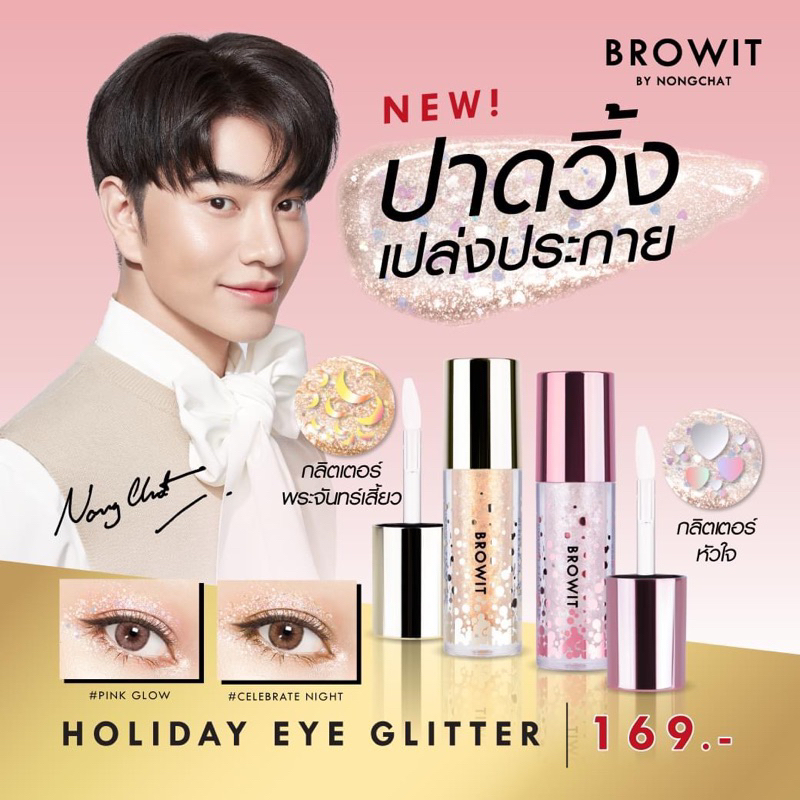 ส่งฟรี/มีไลฟ์ บราวอิท น้องฉัตร ฮอลิเดย์ อาย กลิตเตอร์ อายแชโดว์ ทาตา Browit By Nongchat Holiday Eye Glitter 3g.