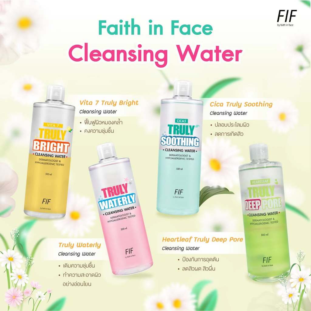 Faith in Face Cleansing Water 500ml คลีนซิ่ง จากเฟธอินเฟซ ขจัดสิ่งสกปรกคราบเครื่องสำอางอย่างอ่อนโยน