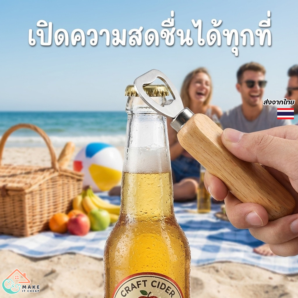 ที่เปิดขวดฝาจีบ ด้ามไม้ธรรมชาติ เปิดน้ำอัดลม เบียร์ ใช้ง่าย เหมาะทำของขวัญและของชำร่วย