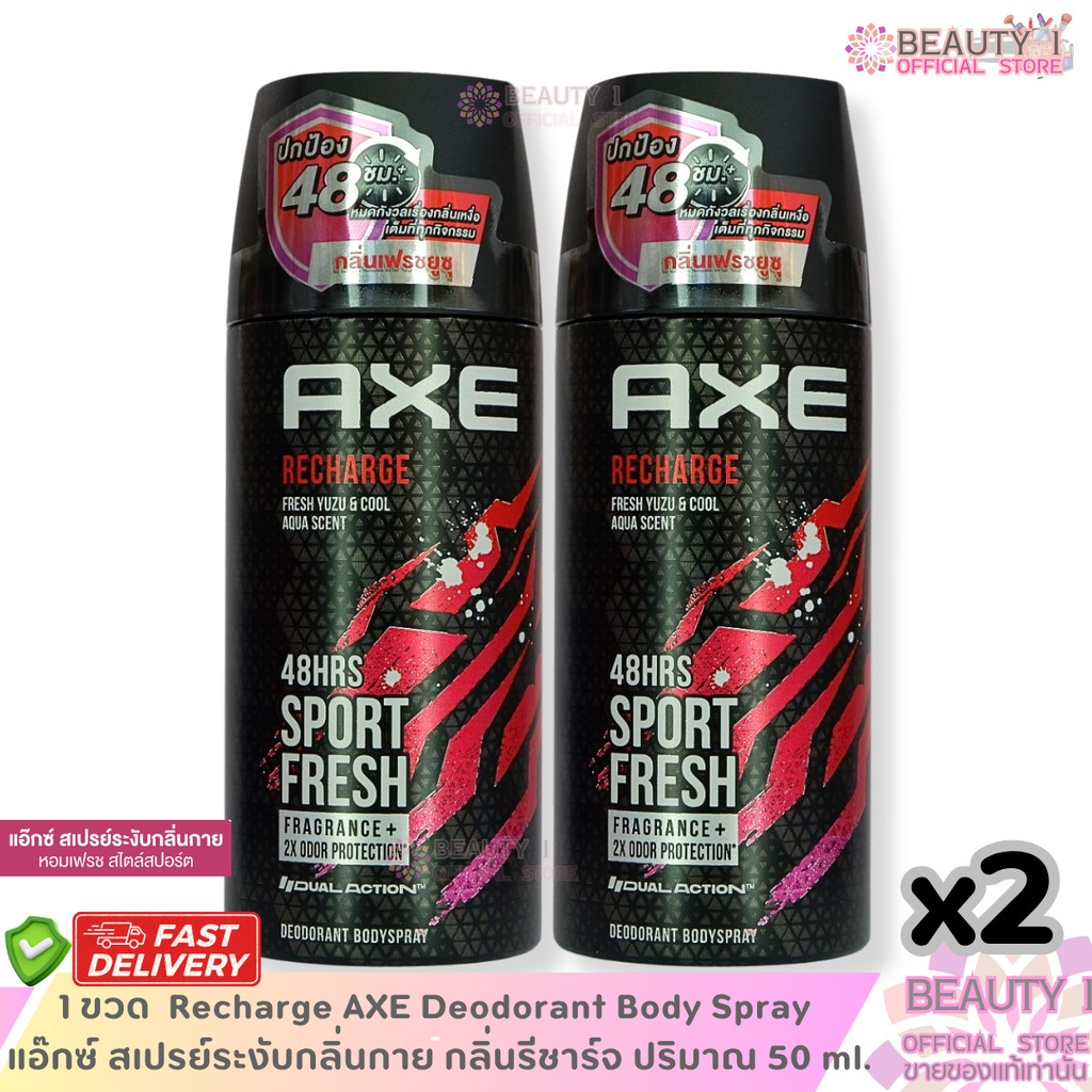 2 ขวด กลิ่น Recharge AXE Deodorant Body Spray 50 ml. แอ๊กซ์ สเปรย์ระงับกลิ่นกาย กลิ่นรีชาร์จ x 2