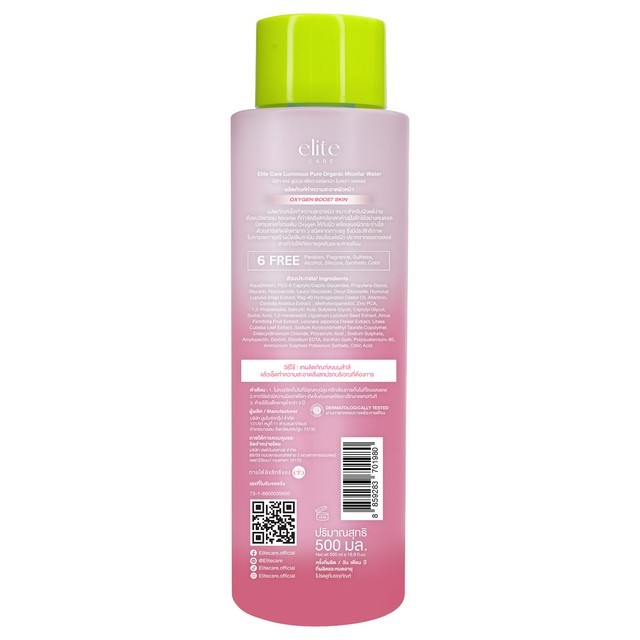 Elite Care Luminous Pure Organic Micellar Water 500 ml.