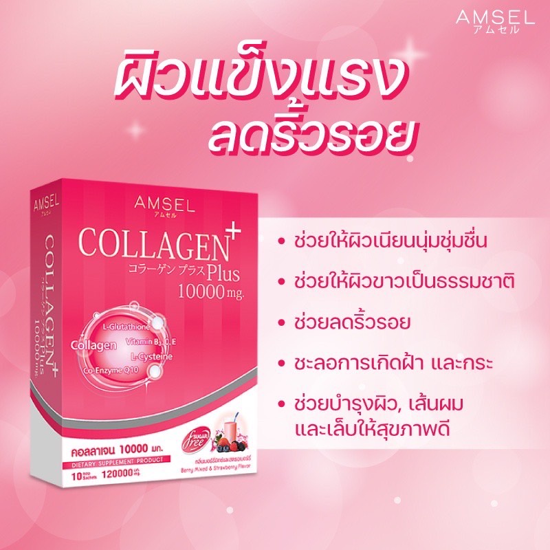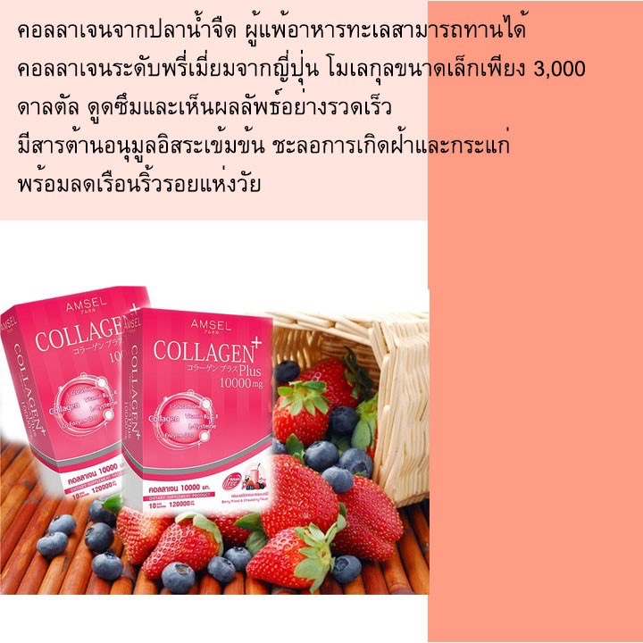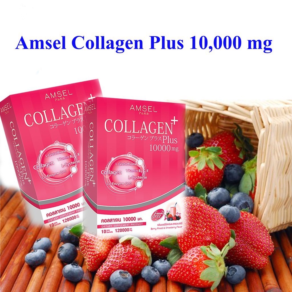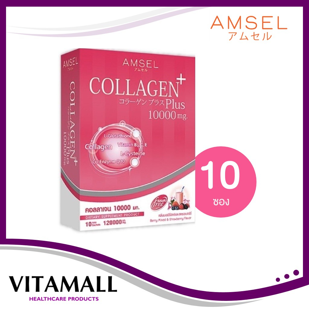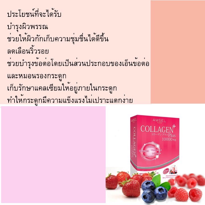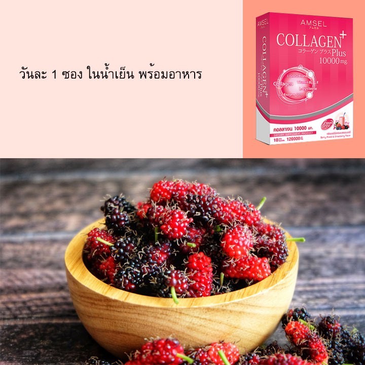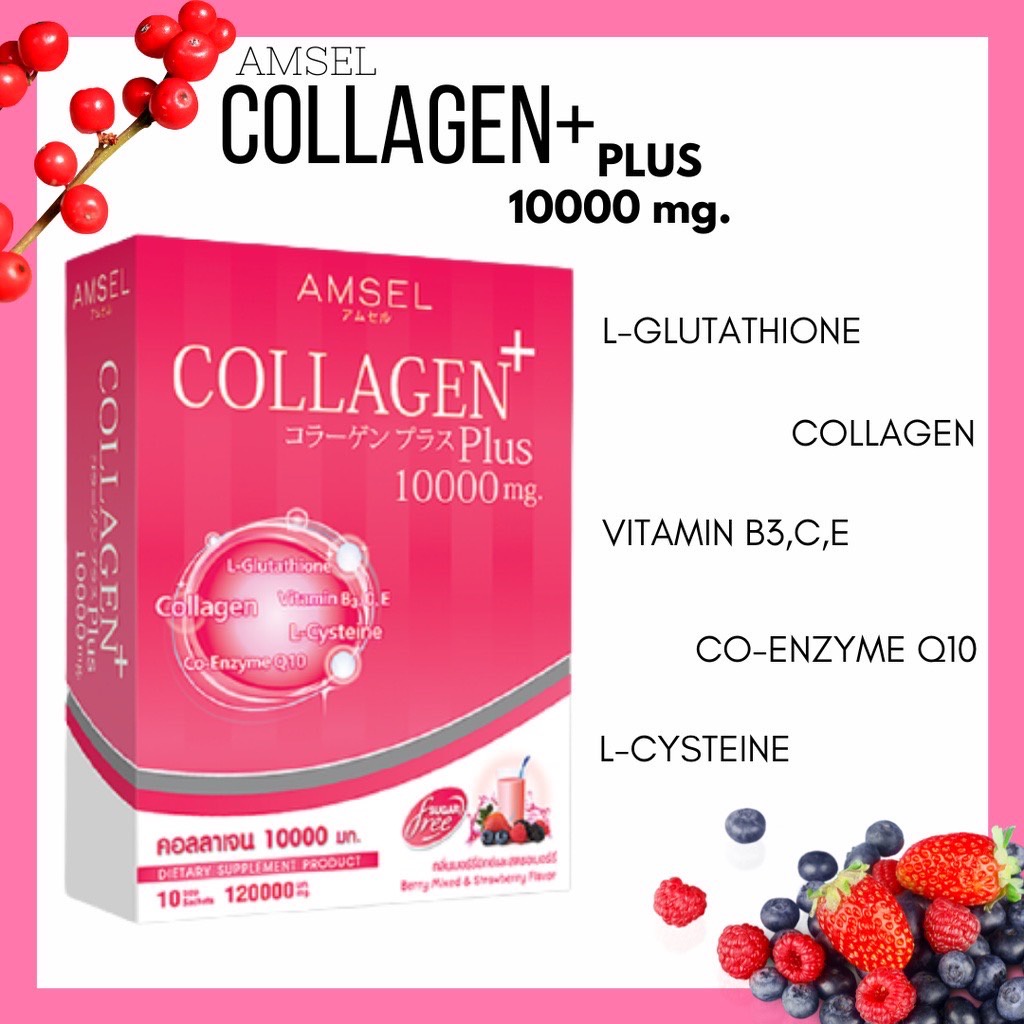 Amsel Collagen Plus Berry (10 Sac) แอมเซล คอลลาเจนพลัส 10,000 มก. รสเบอร์รี่มิกซ์ (10 ซอง)