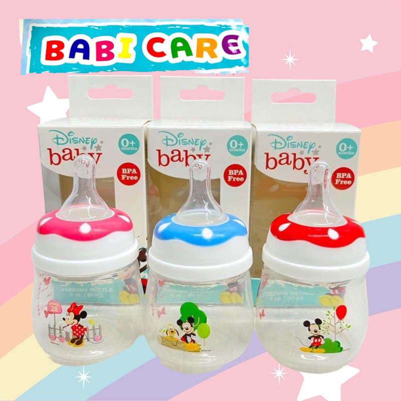Babi care (2ขวด ) ขวดนม PP มิกกี้ & มินนี่ เบบี้แคร์ (2 oz. แพ็ค 2 ขวด คละสี ) พร้อจุกเล็กพิเศษMK873