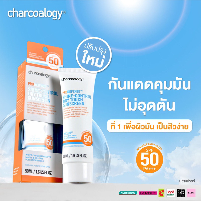 Exp.28 | Charcoalogy กันแดด โปรดีเฟนซ์ ชายน์ คอนโทรล ดราย ทัช SPF50 PA+++ 50 มล
