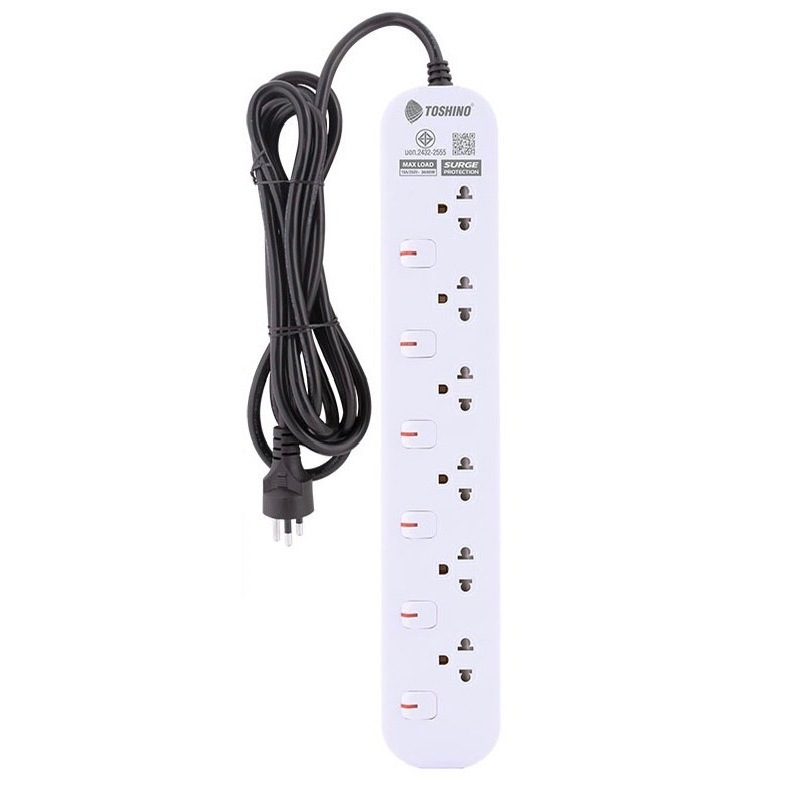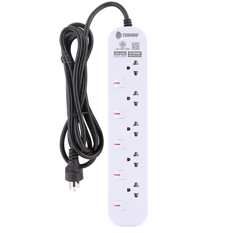 ถูกสุด+แถมปลั๊กแปลง Toshino โตชิโน่ รางปลั๊กไฟ ปลั๊กไฟ ปลั๊กพ่วง รุ่น JT 3/4/5/6 ช 1.5/3/5/10 ม 16A/3600W 2 สี ขาว/ดำ