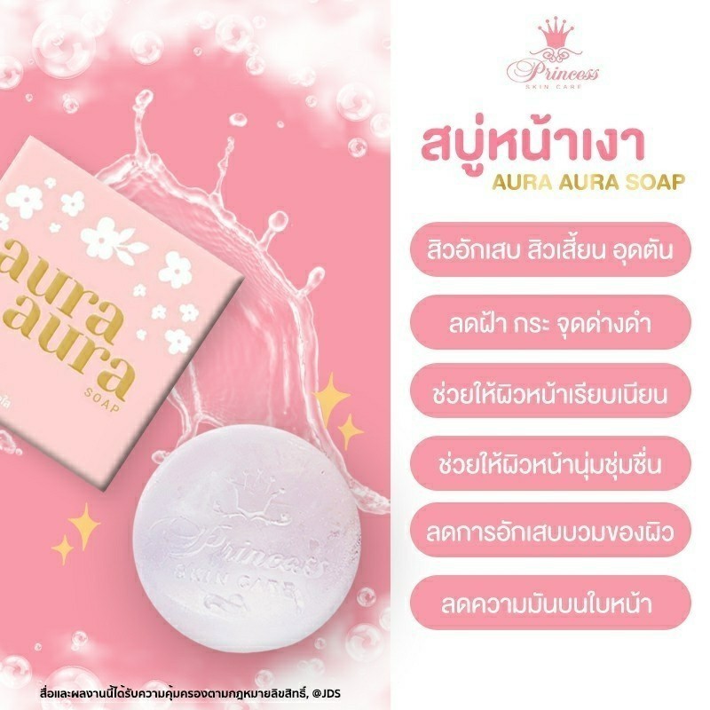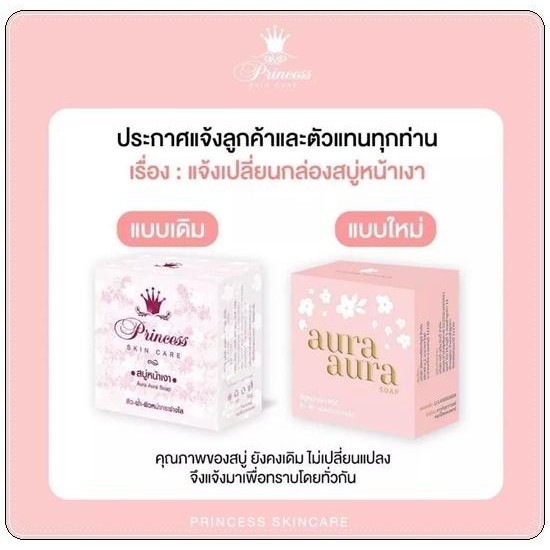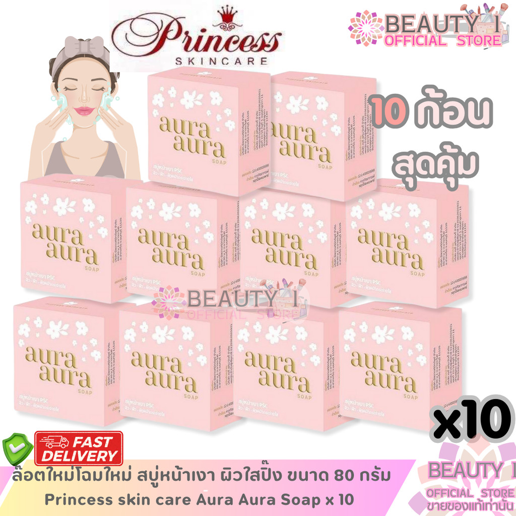 10 ก้อน ล๊อตใหม่ โฉมใหม่ สบู่หน้าเงา Princess skin care Aura Soap ปริมาณ 80 กรัม x 10 ก้อน