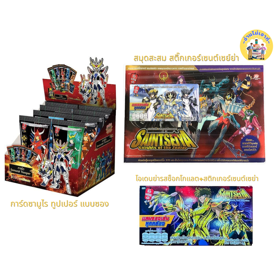 สมุดสะสม สติ๊กเกอร์เซนต์เซย์ย่า , โอเดนย่ารสช็อกโกแลต+สติกเกอร์เซนต์เซย่า ,การ์ดซามูไร ทูปเปอร์ แบบซอง #อ่านไม่เอาท์