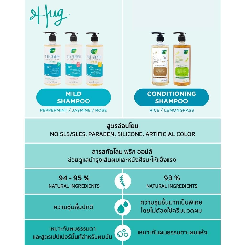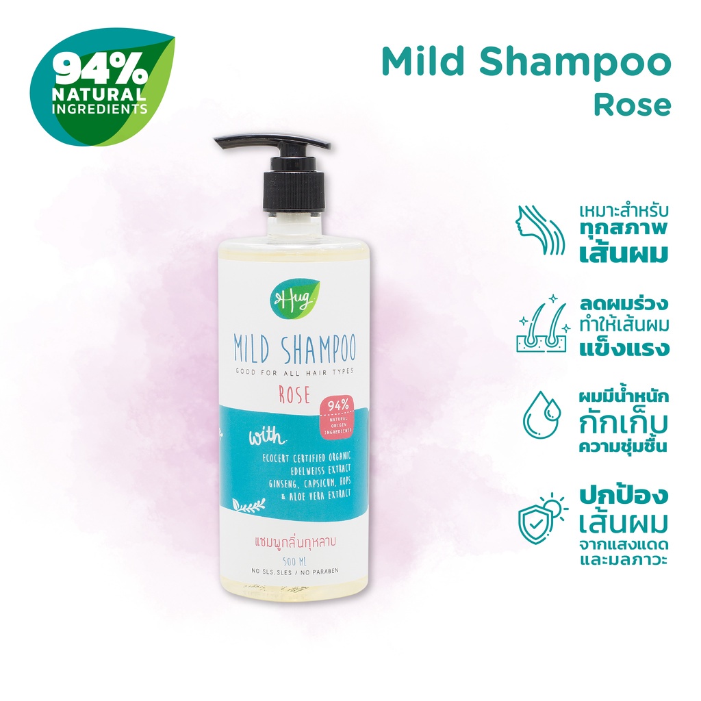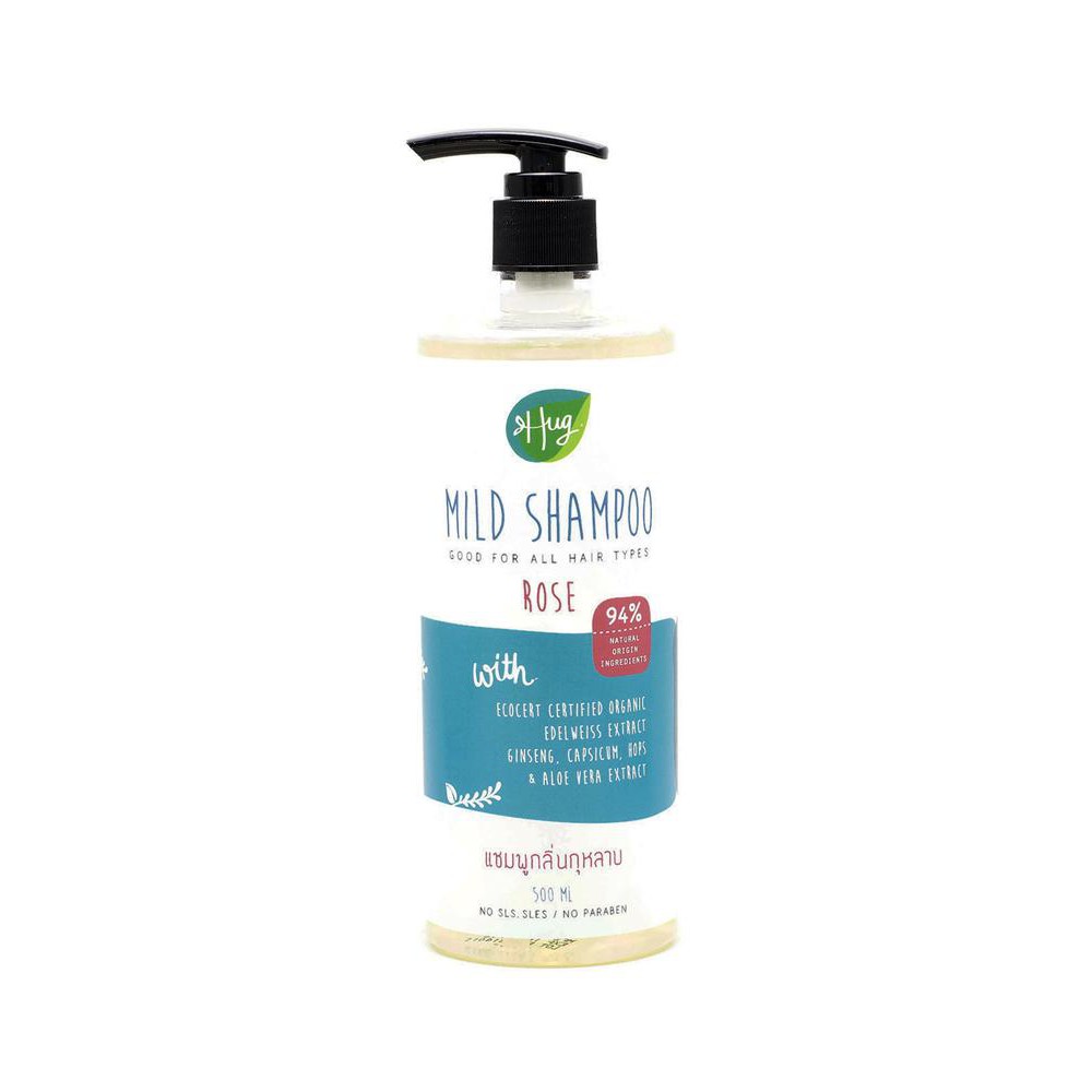 Hug ฮัก แชมพูสูตรอ่อนโยน กลิ่นกุหลาบ Mild Shampoo Rose (500ml)