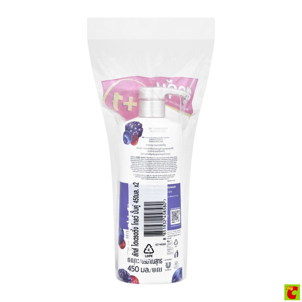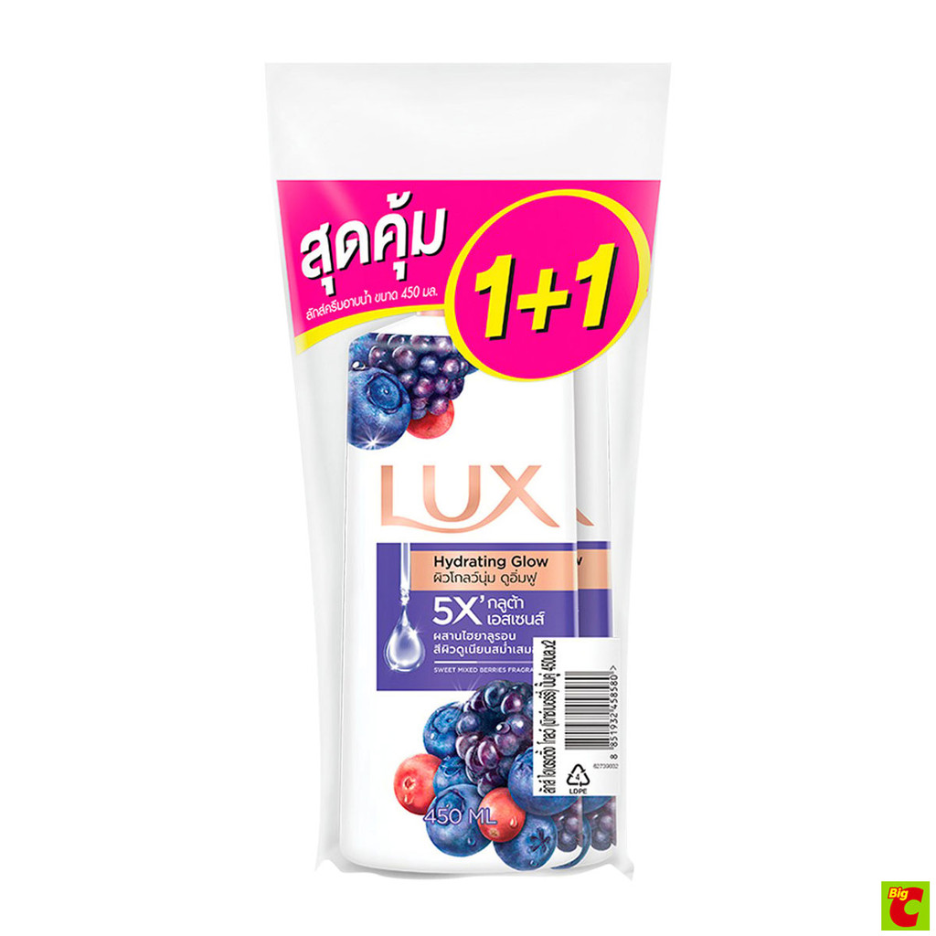 ลักส์ ครีมอาบน้ำ ไฮเดรตติ้ง โกลว์ มิกซ์เบอร์รี่ ขวดปั๊ม 450 มล. แพ็ค 1+1