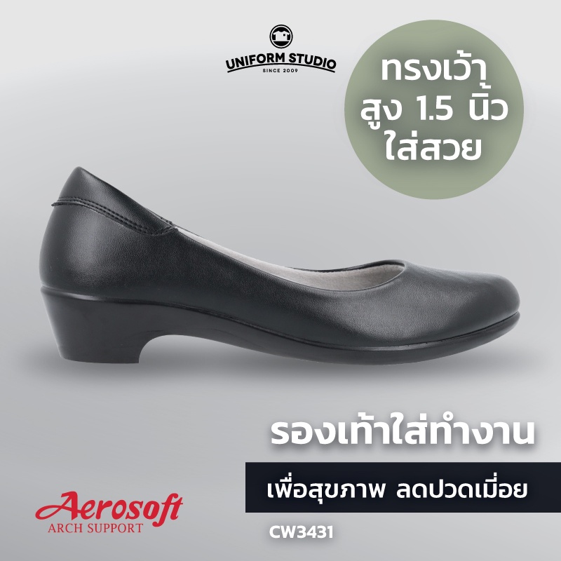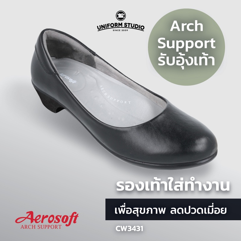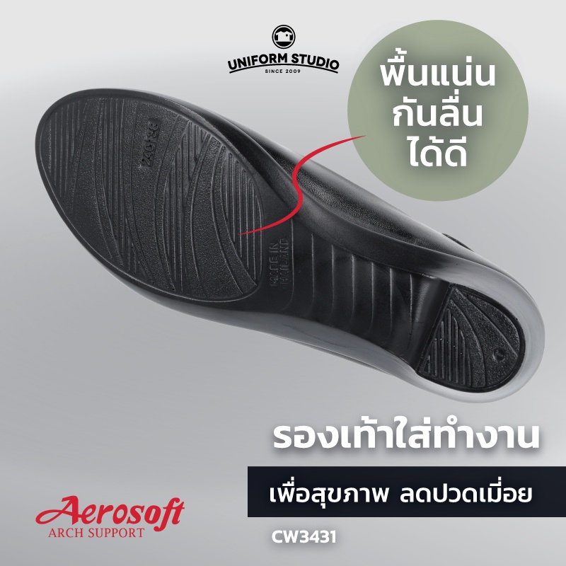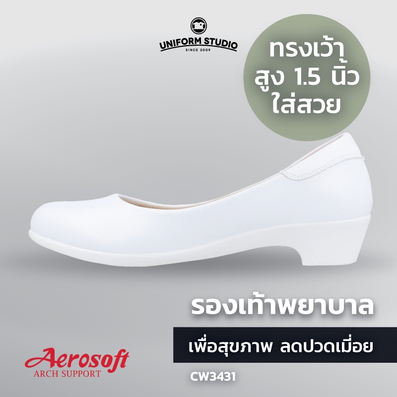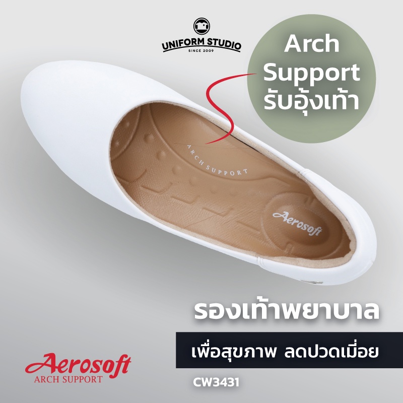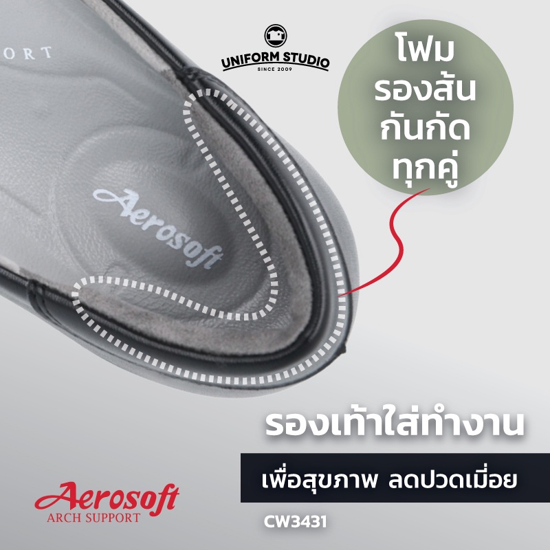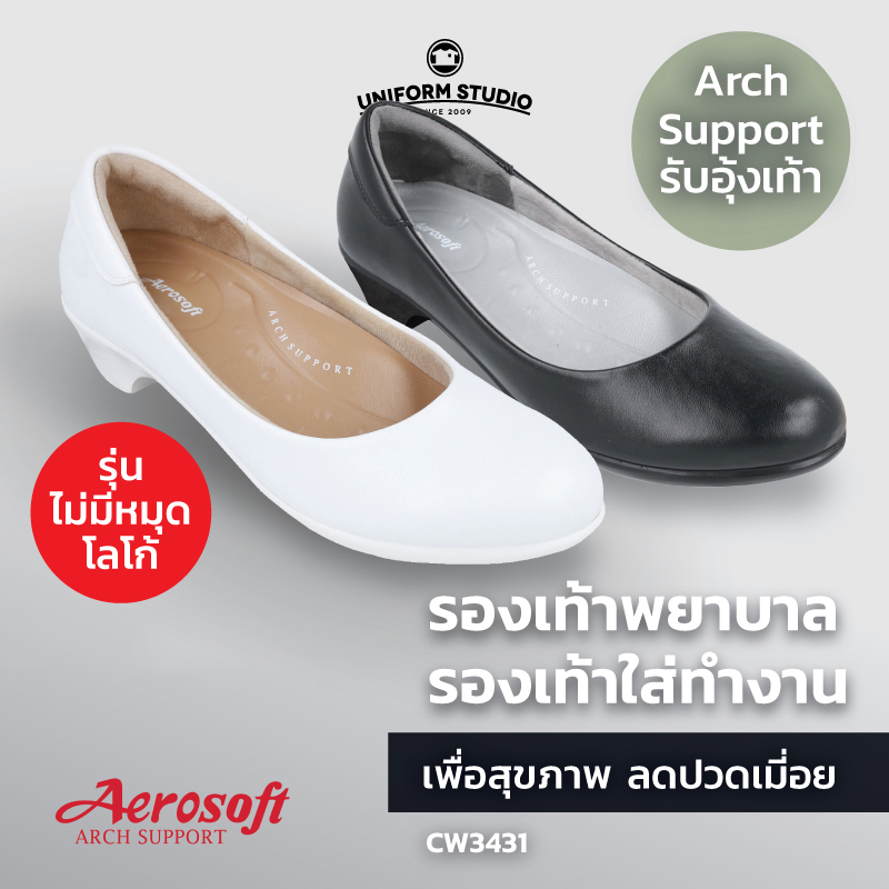 รองเท้าคัทชูพยาบาล Aerosoft (CW3431) เพื่อสุขภาพ ใส่ทำงาน มีส้นไม่มีหมุด สีขาว สีดำ(มีหนุนอุ้งเท้า)
