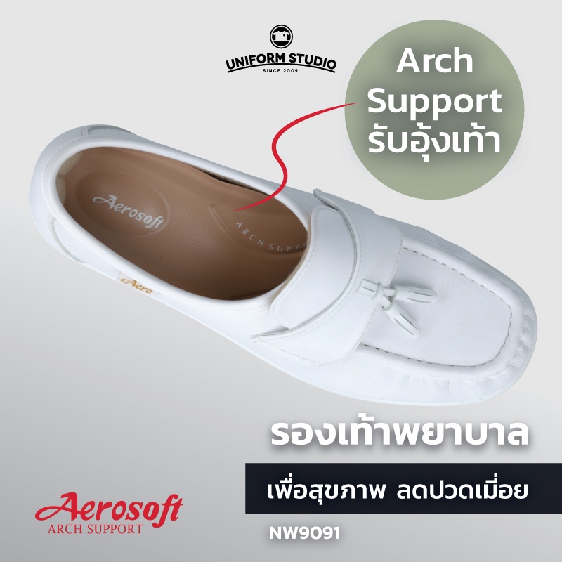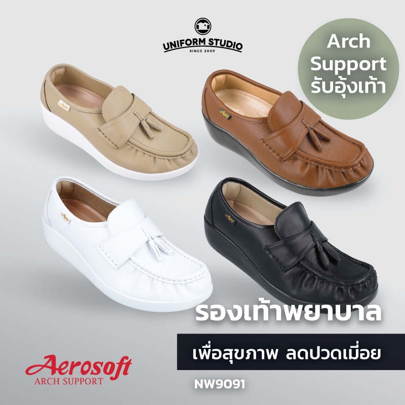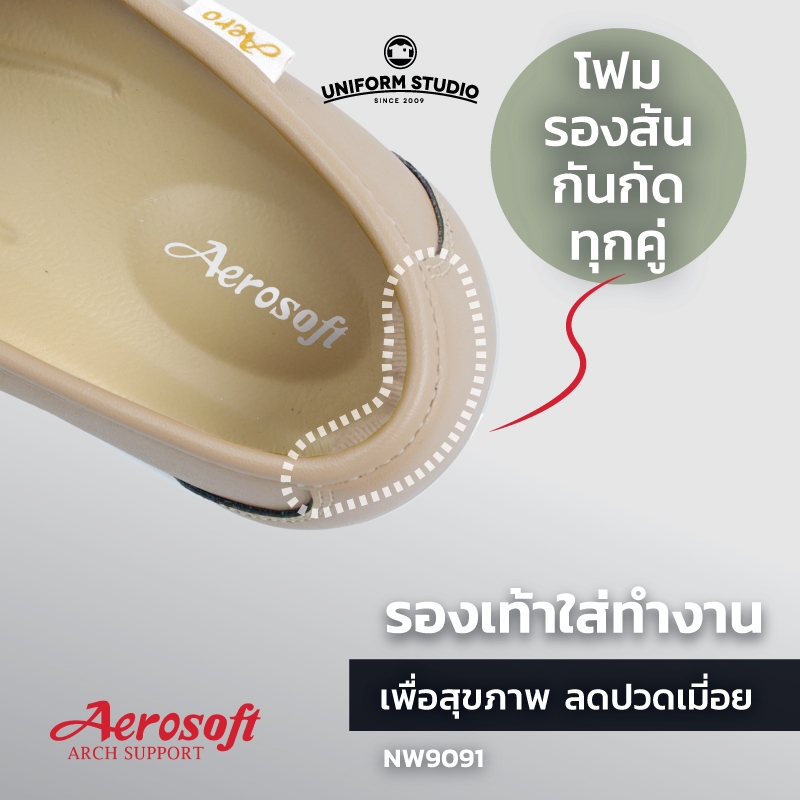 รองเท้าคัทชูพยาบาล Aerosoft (NW9091) เพื่อสุขภาพ ใส่ทำงาน สีขาว สีดำ สีครีม สีน้ำตาล