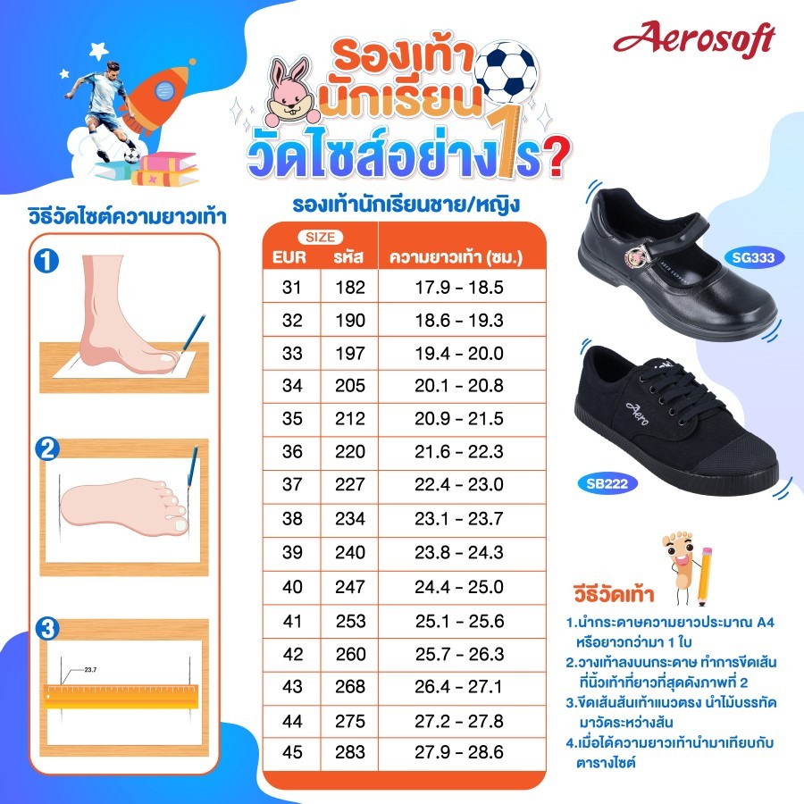 รองเท้านักเรียนเพื่อสุขภาพ สีดำ Aerosoft (แอโร่ซอฟ) รุ่น SG333